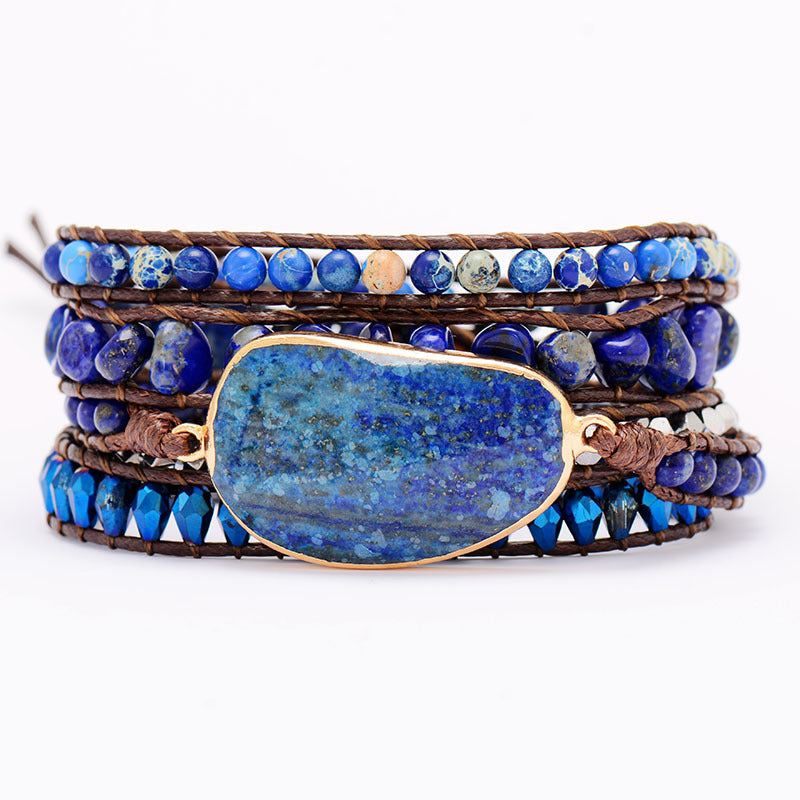 Bohemian Boho Natural Stone Beads Beaded Bracelet for Women, Handmade Wrapped Multilayer Adjustable Bracelet
