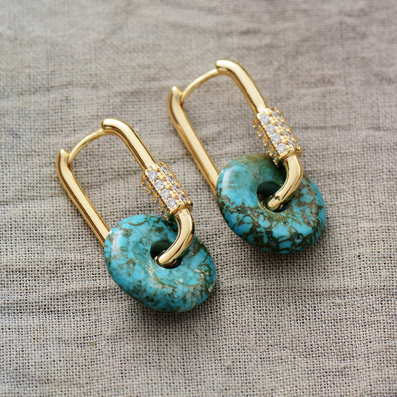 Bohemian Boho Natural Turquoise Stone Crystal Handmade Dangle Earrings for Women