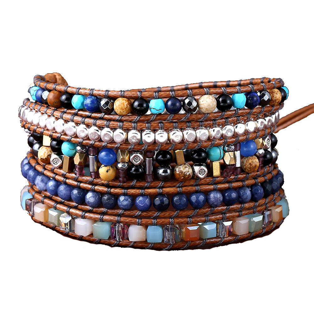 Bohemian Boho Vintage Multi-layer Crystal Stone Metal Beads Handmade Woven Beaded Bracelet for Women