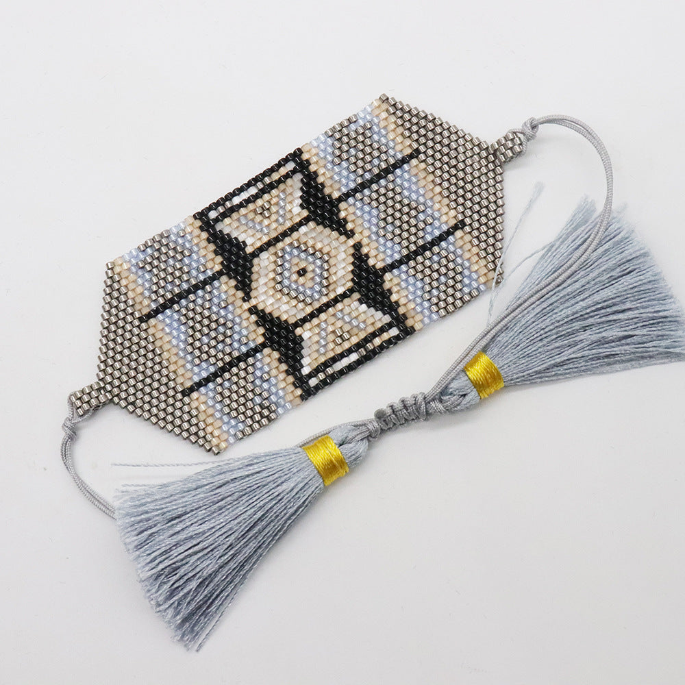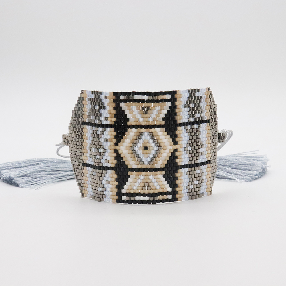Bohemian Geometric Miyuki Beads Beaded Bracelets, Vintage Handmade Wide Adjustable Beaded Bracelet for Women