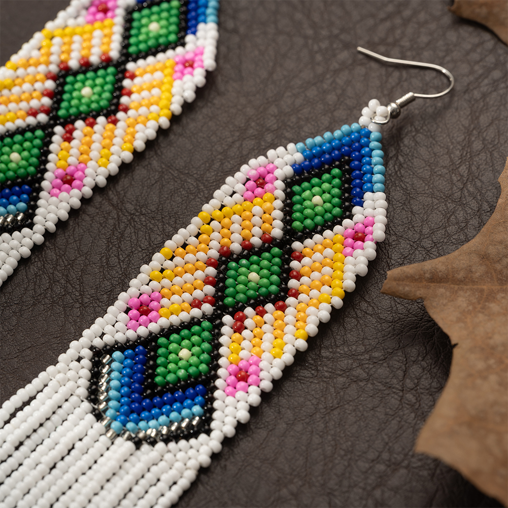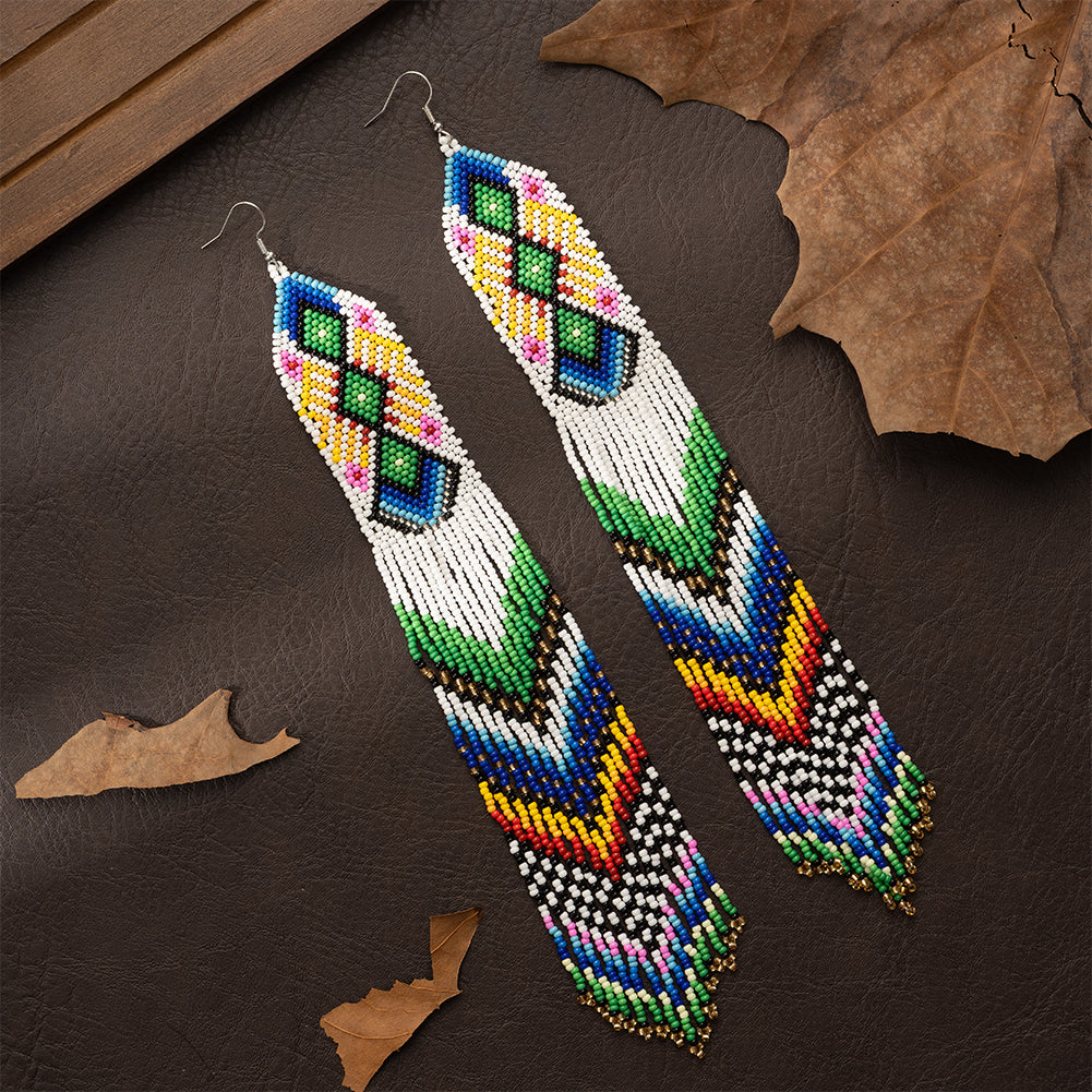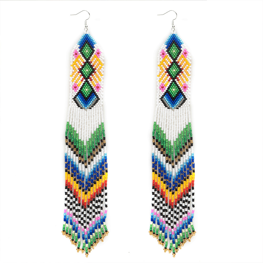 Colorful Native Long Beaded Dangle Earrings for Women, Bohemian Boho Statement Handmade Long Beads Tassel Drop Earrings