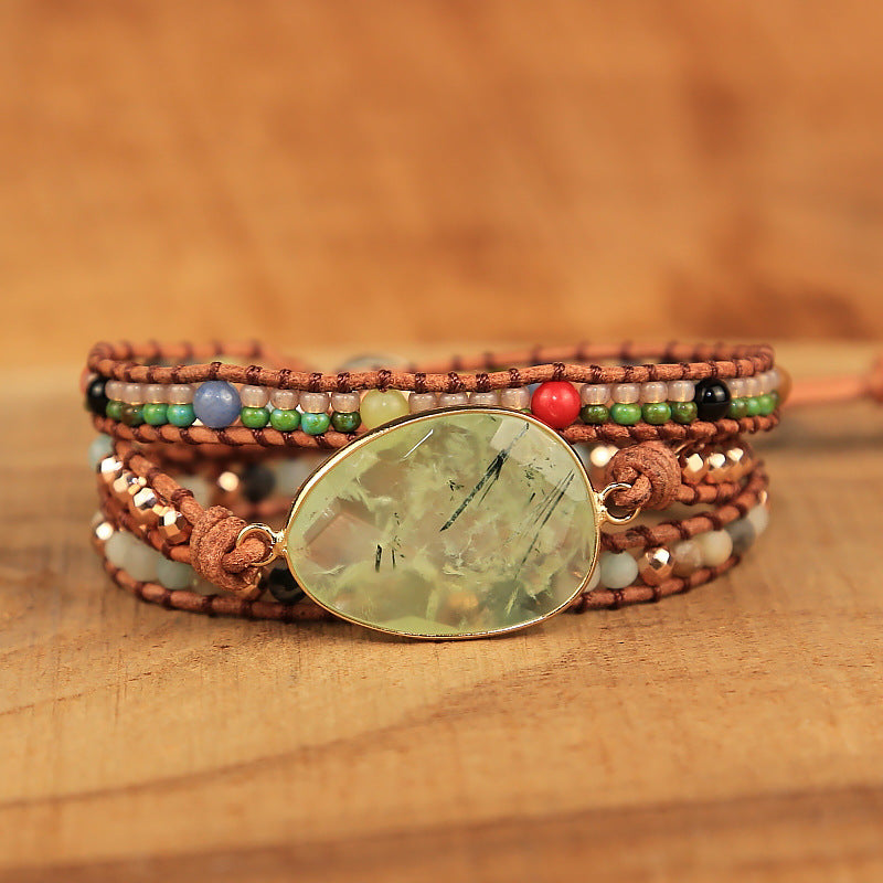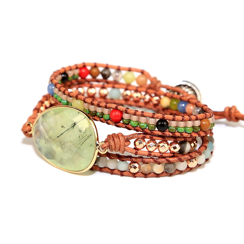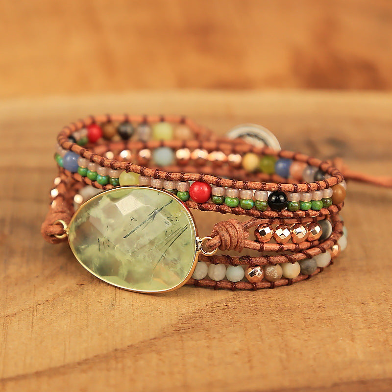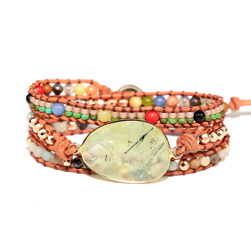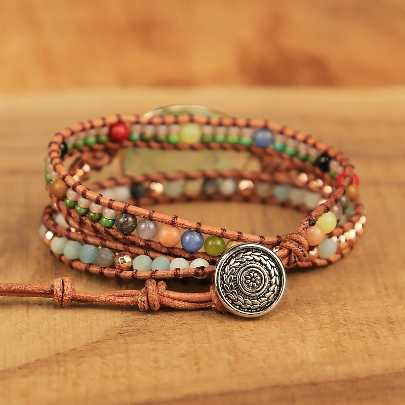 Crystal Stone Metal Beads Beaded Bracelet for Women, Vintage Bohemian Boho Woven Handmade Multilayer Adjustable Bracelet with Leather Rope