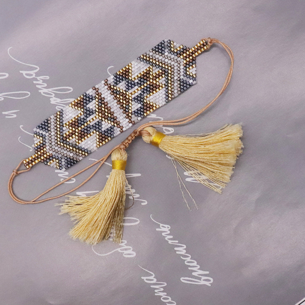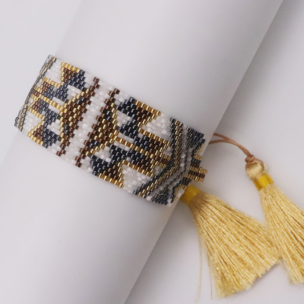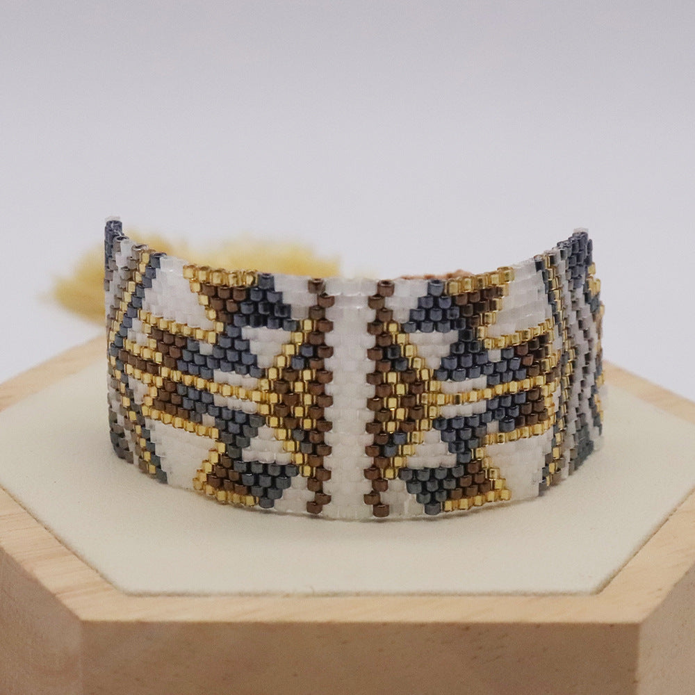 Geometric Bohemian Miyuki Beads Beaded Bracelets, Handmade Wide Adjustable Beaded Bracelet for Women