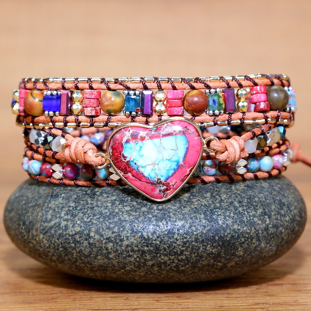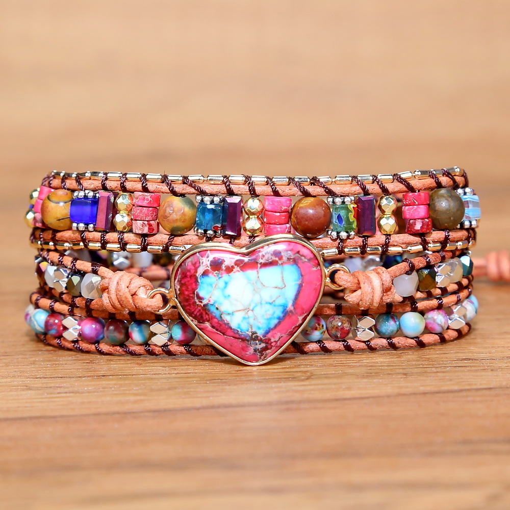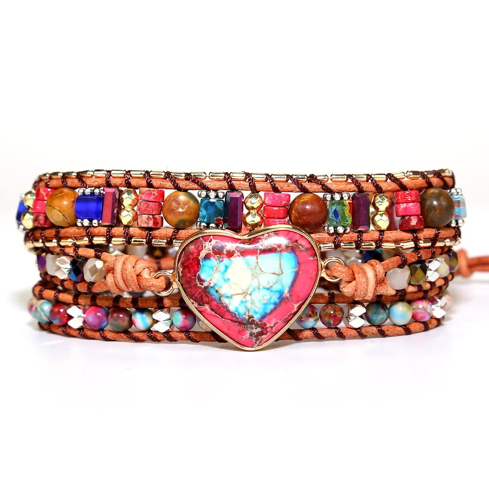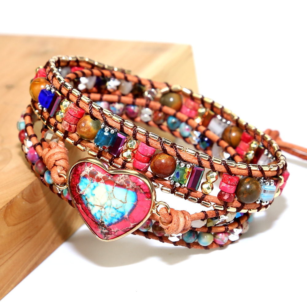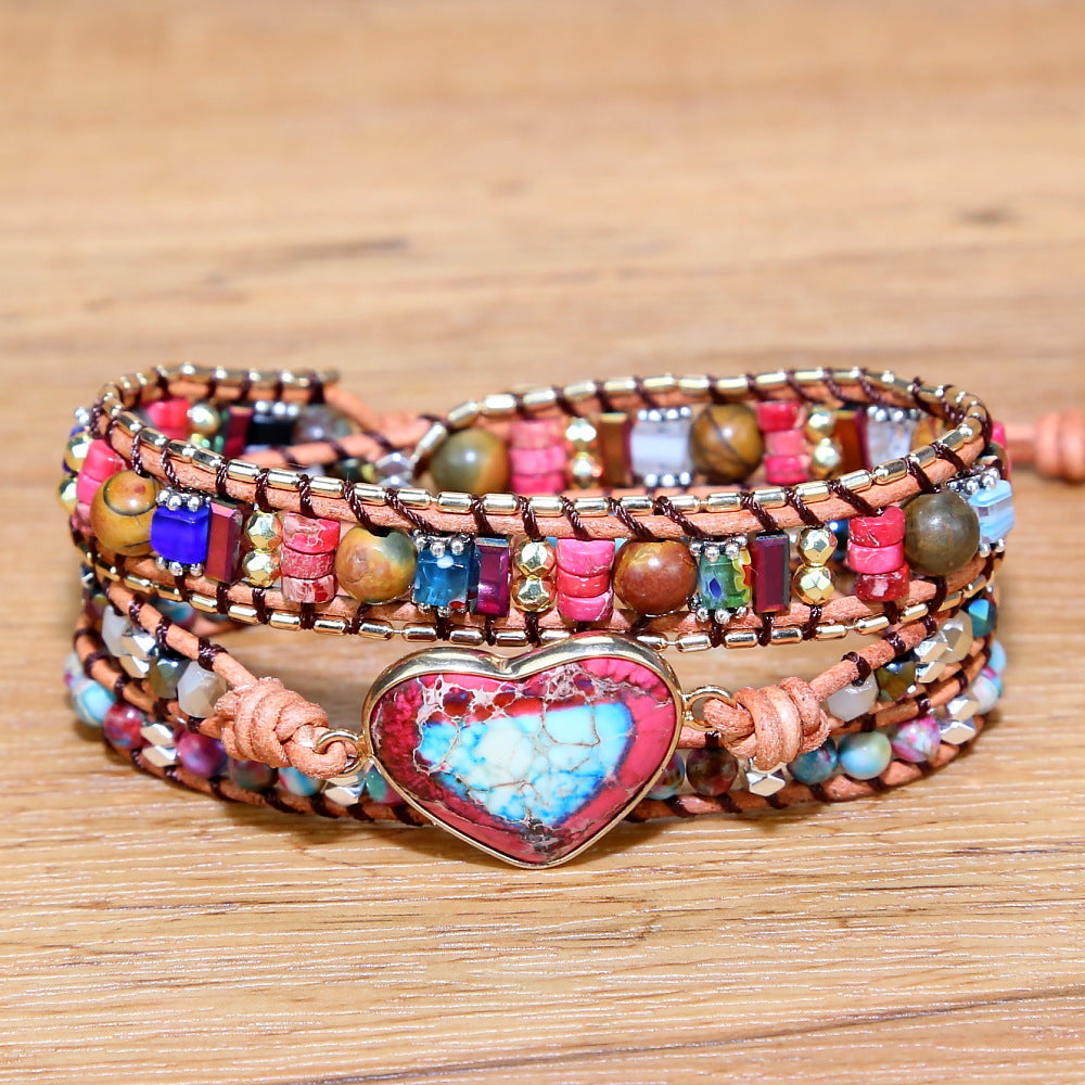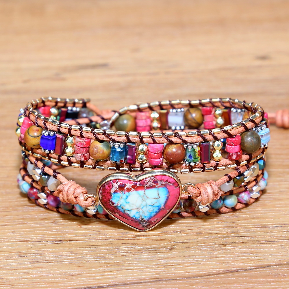 Handmade Natural Stone Crystal Metal Mixed Beads Beaded Bracelet, Bohemian Boho Multilayer Adjustable Bracelets for Women