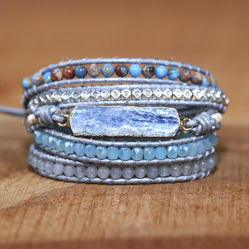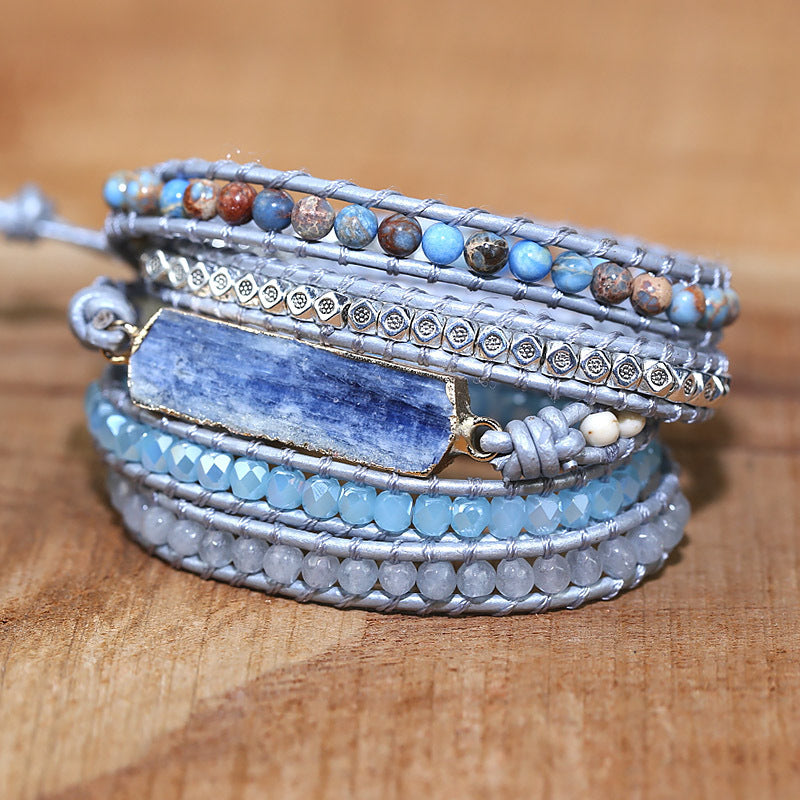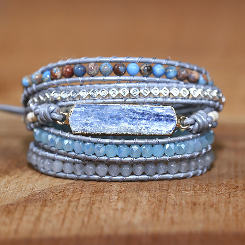 Handmade Woven Natural Stone Crystal Metal Beads Beaded Bracelet, 5-layer Bohemian Boho Adjustable Bracelet for Women
