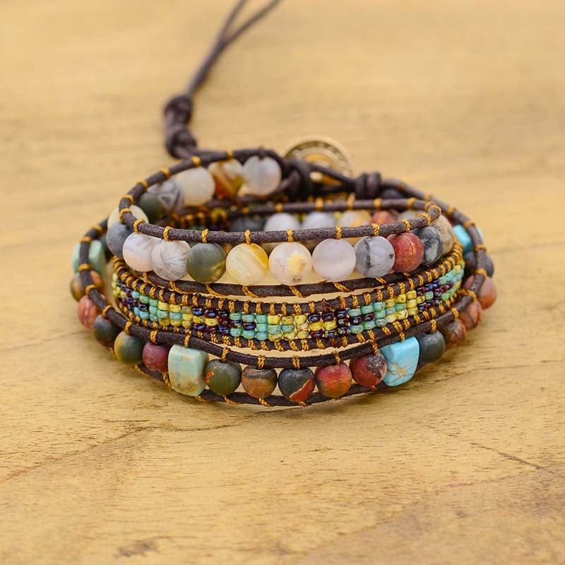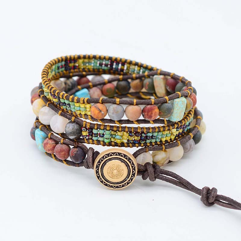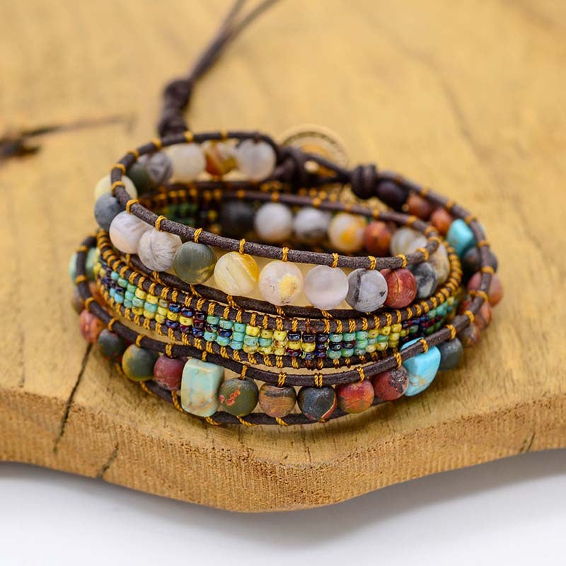 Handmade Woven Stone Beads Beaded Bracelet for Women, Bohemian Boho Multi-layer Wrapped Adjustable Rope Bracelet