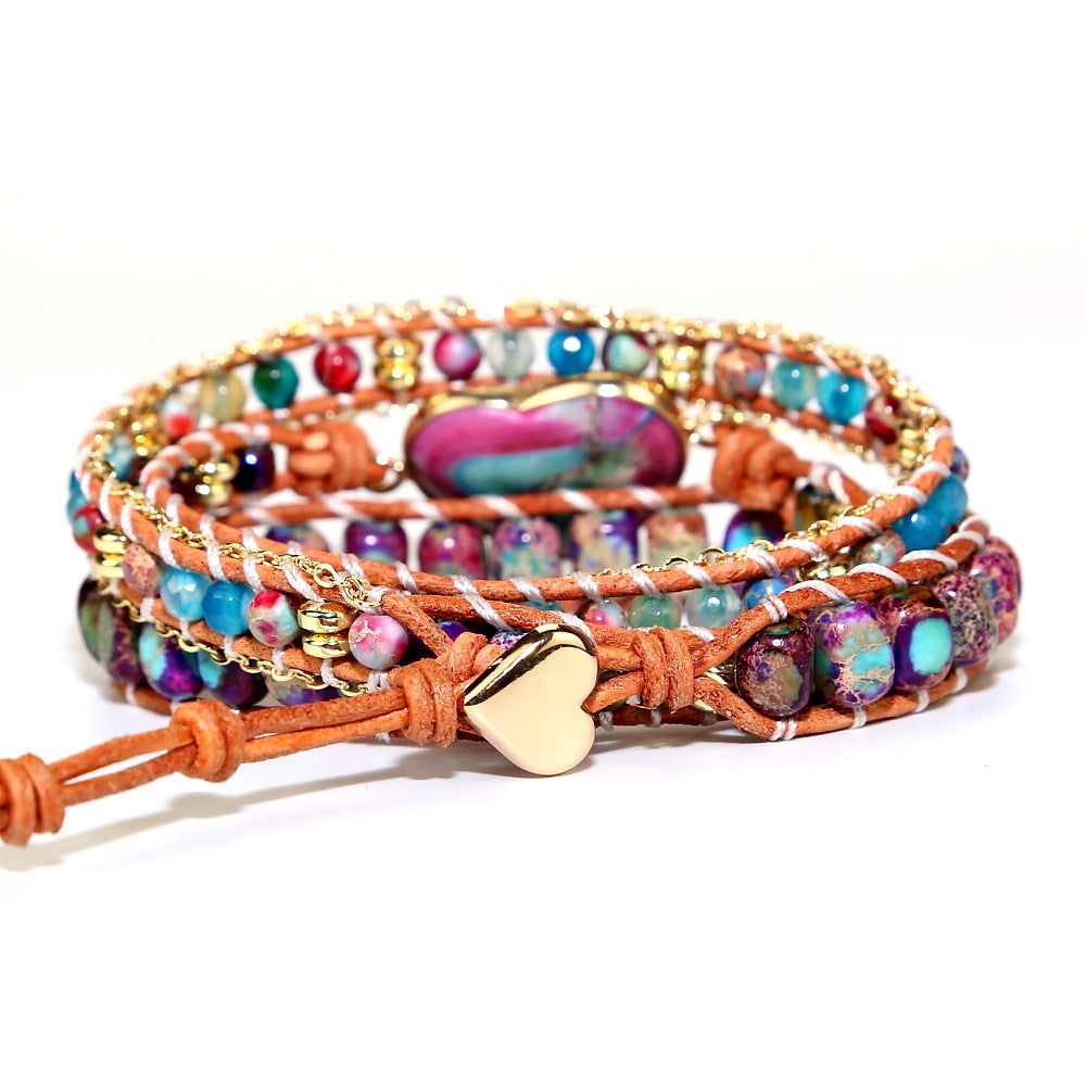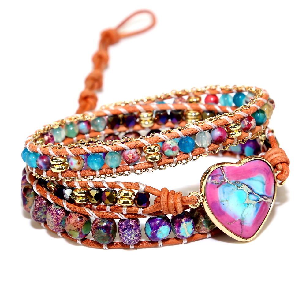 Heart Natural Stone Beads Beaded Bracelet for Women, Hand Woven Bohemian Boho Multilayer Adjustable Bracelet