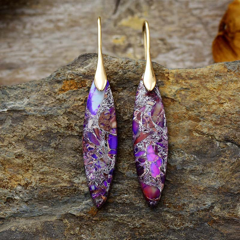 Leaf Shape Bohemian Boho Natural Stone Handmade Dangle Earrings for Women