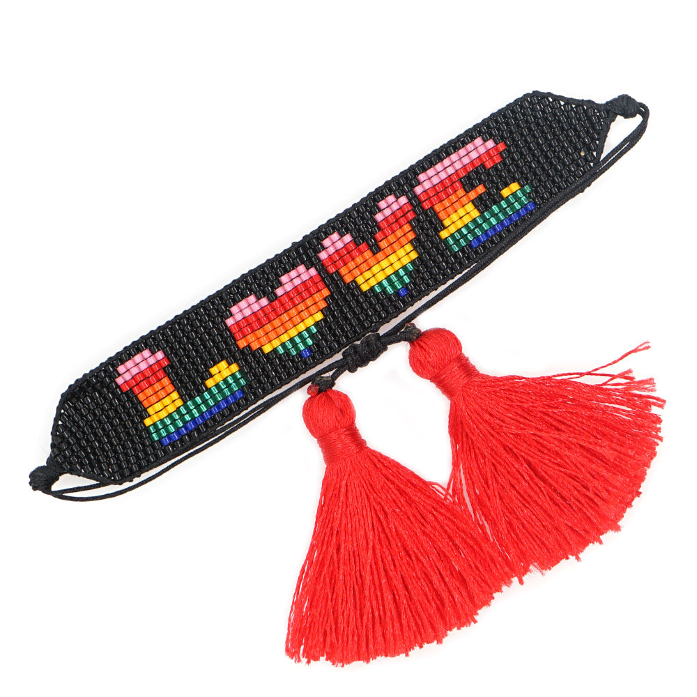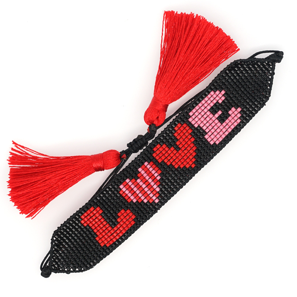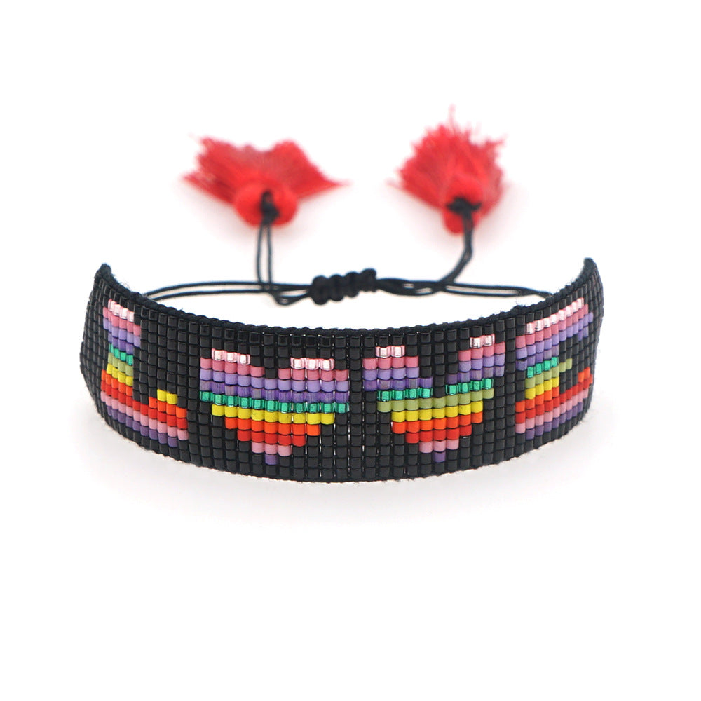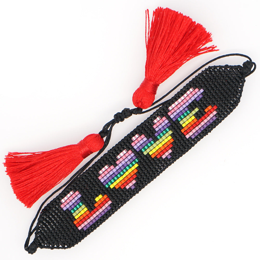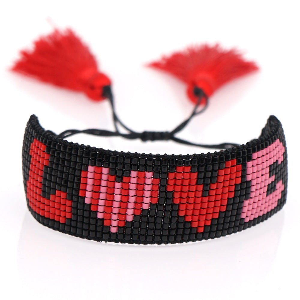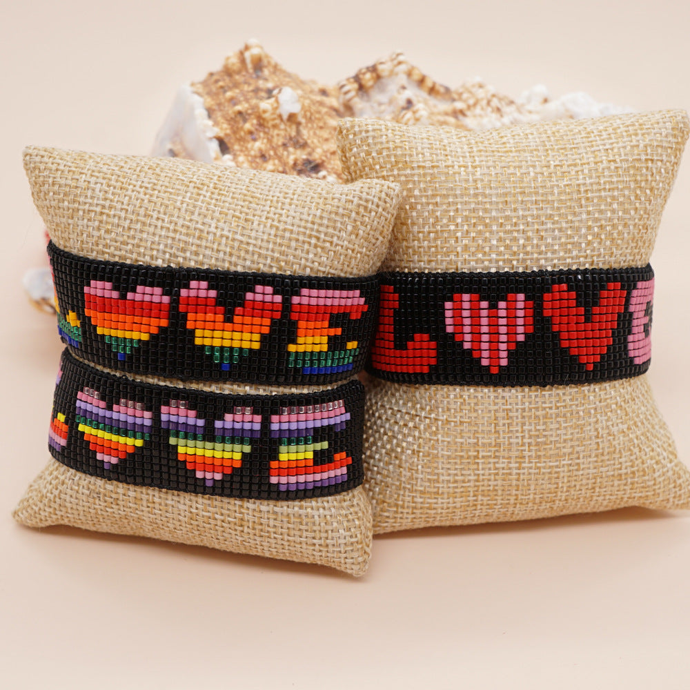 Love Bohemian Miyuki Beads Beaded Bracelets, Handmade Wide Adjustable Beaded Bracelet for Women