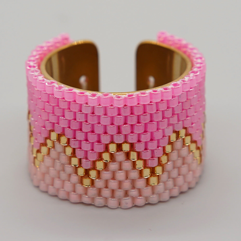 Miyuki Beads Beaded Handcrafted Stainless Steel Bohemian Style Ring for Women