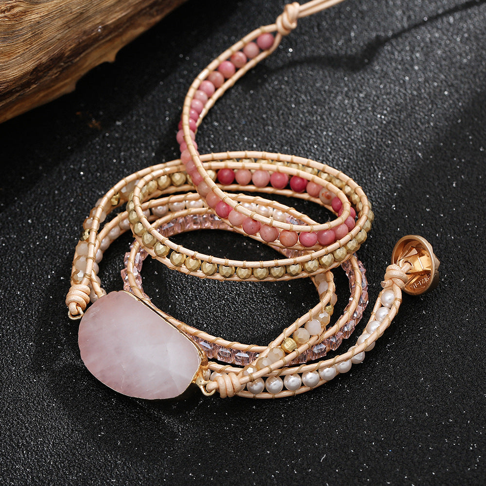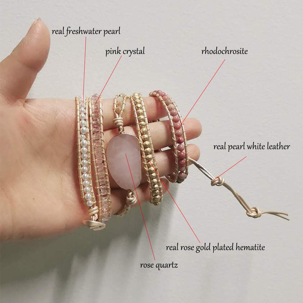 Multi Layer Winding Crystal Stone Pearl Mixed Beads Beaded Bracelet, Hand Woven Bohemian Boho Bracelets for Women