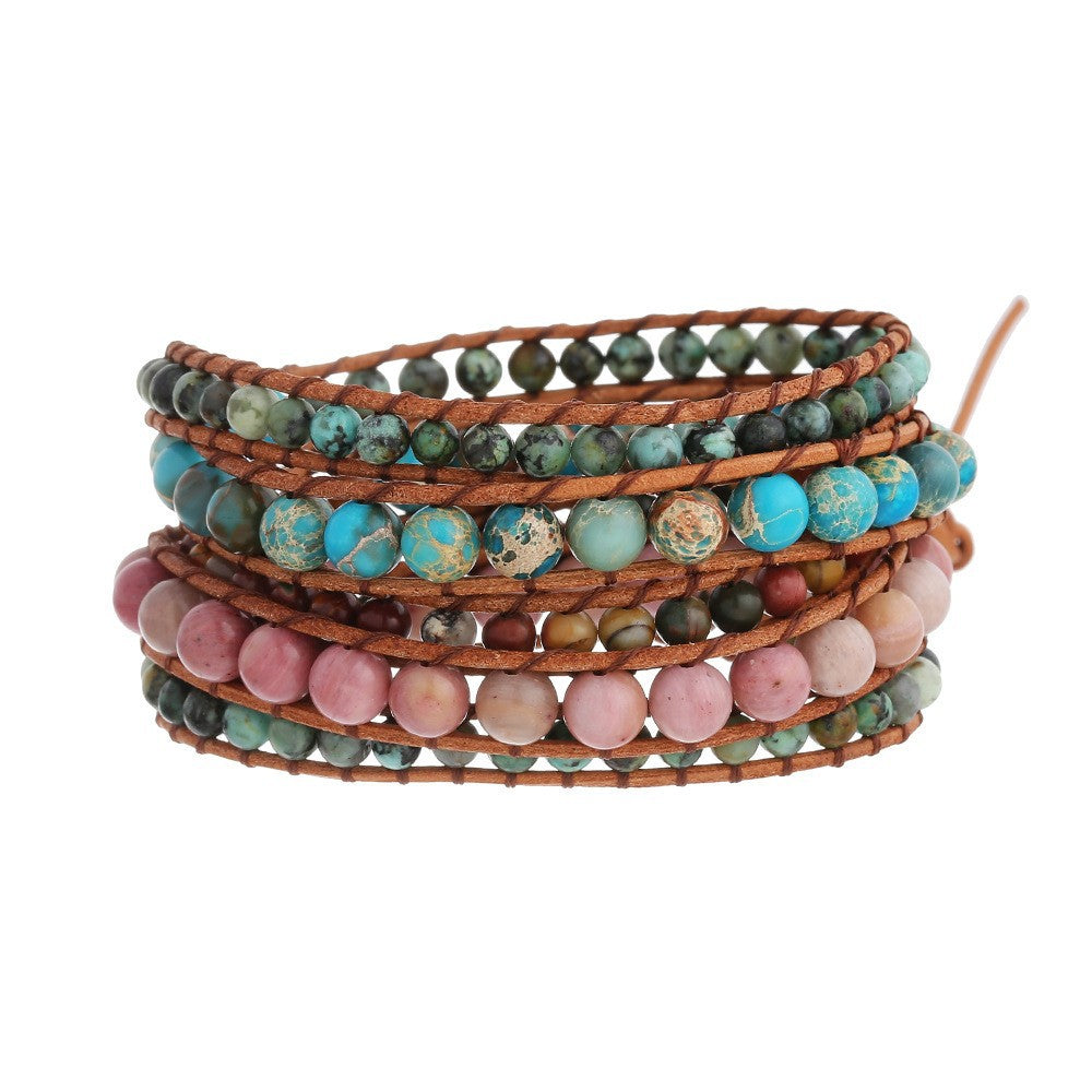 Multi Layer Winding Natural Stone Beads Beaded Bracelet for Women, Retro Bohemian Boho Handmade Weaving Adjustable Bracelet