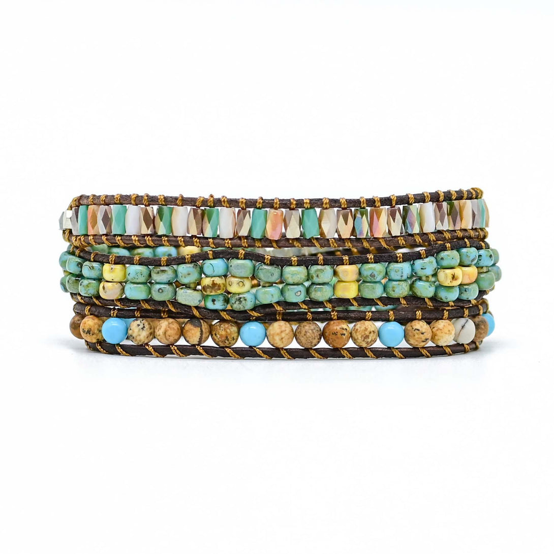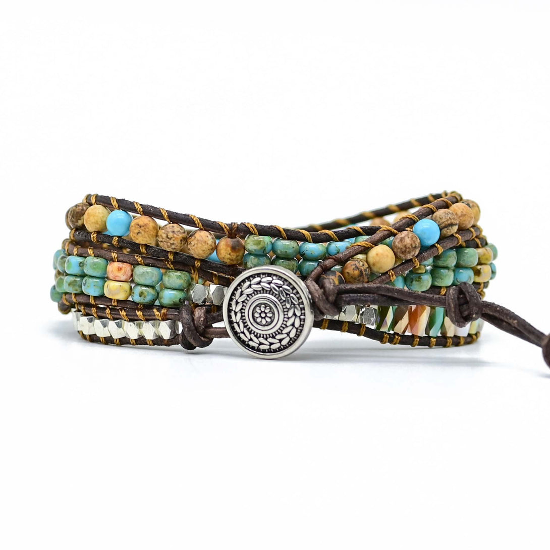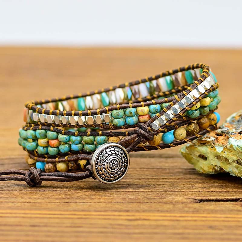 Multi Layer Woven Natural Stone Crystal Mixed Beads Beaded Bracelet for Women, Vintage Bohemian Boho Adjustable Bracelet