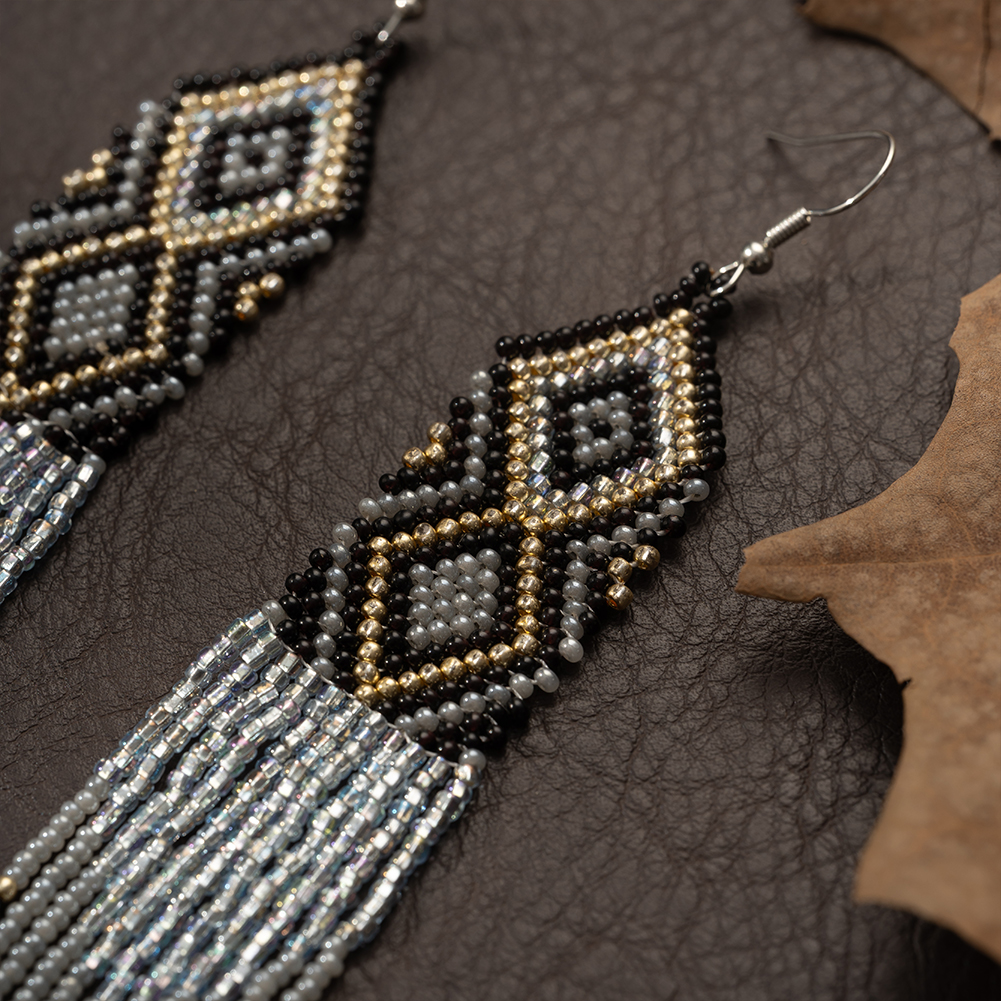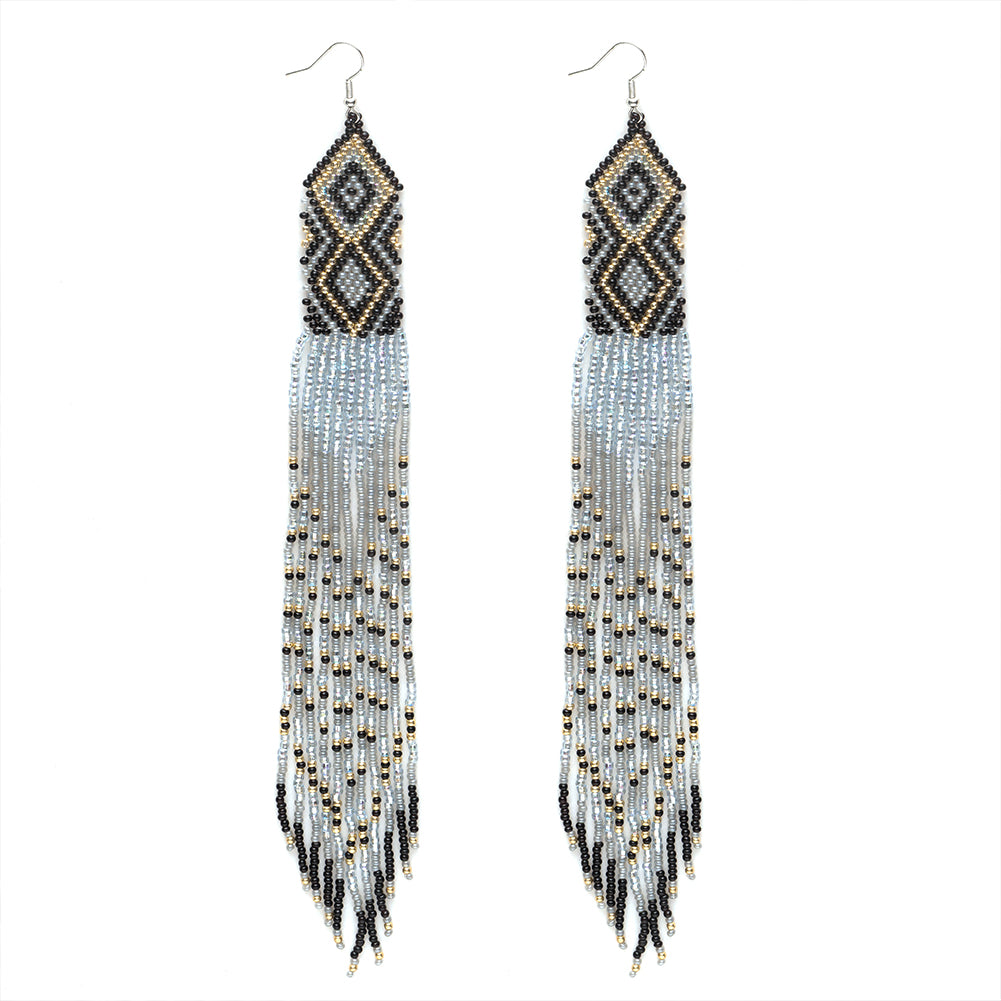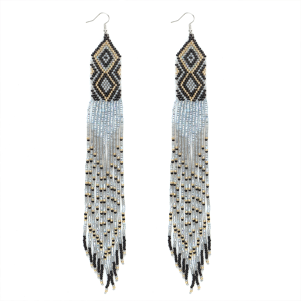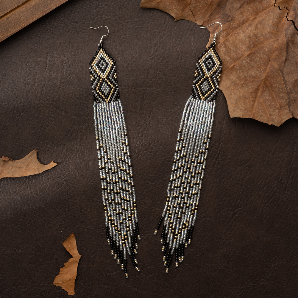 Native Long Beaded Dangle Earrings for Women, Bohemian Boho Statement Handmade Long Beads Tassel Drop Earrings