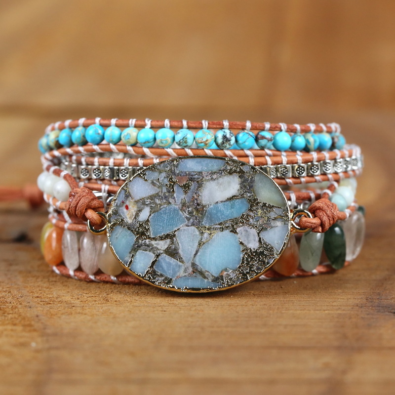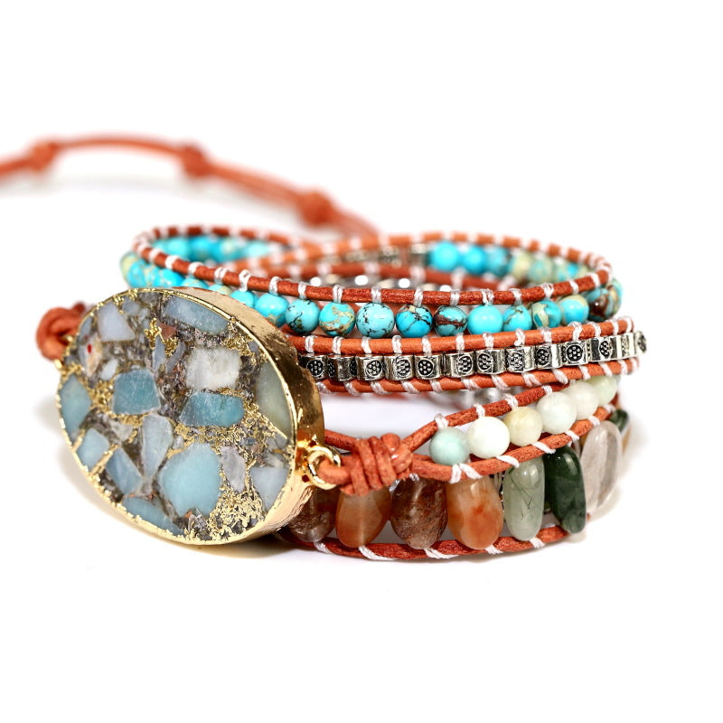 Natural Stone Beads Metal Beads Beaded Bracelet for Women, Hand Woven Vintage Bohemian Boho Multilayer Adjustable Bracelet