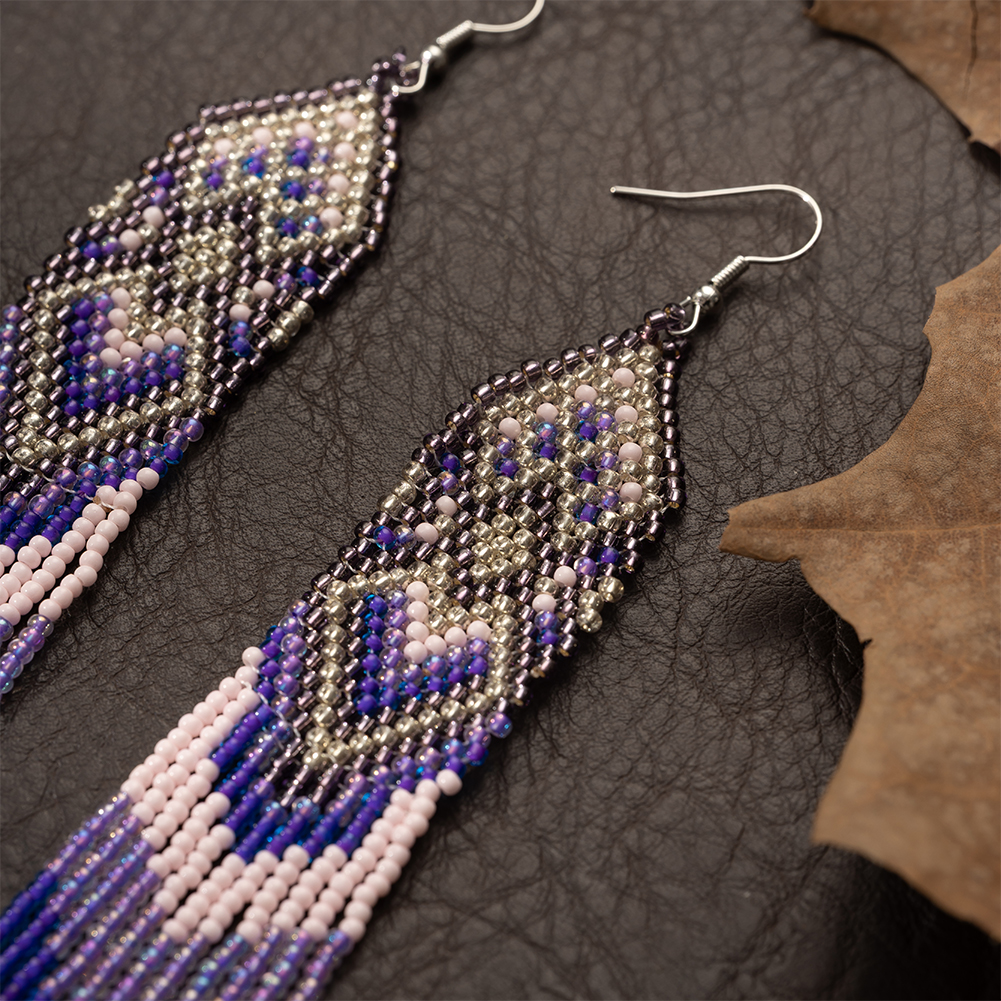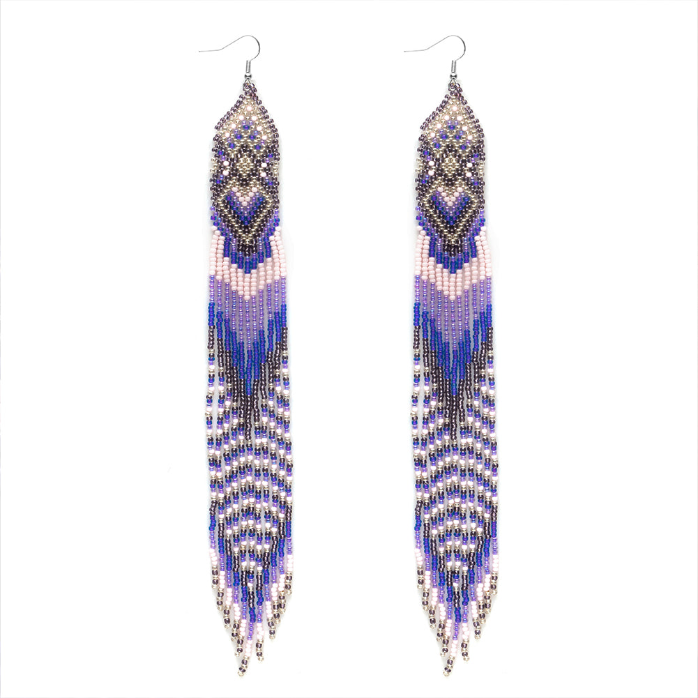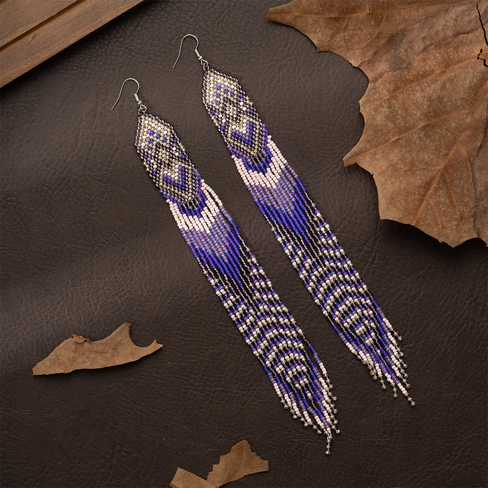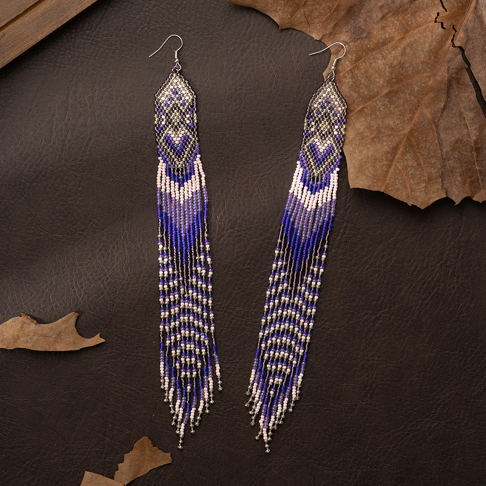 Purple Native Long Beaded Dangle Earrings for Women, Bohemian Boho Statement Handmade Long Beads Tassel Drop Earrings