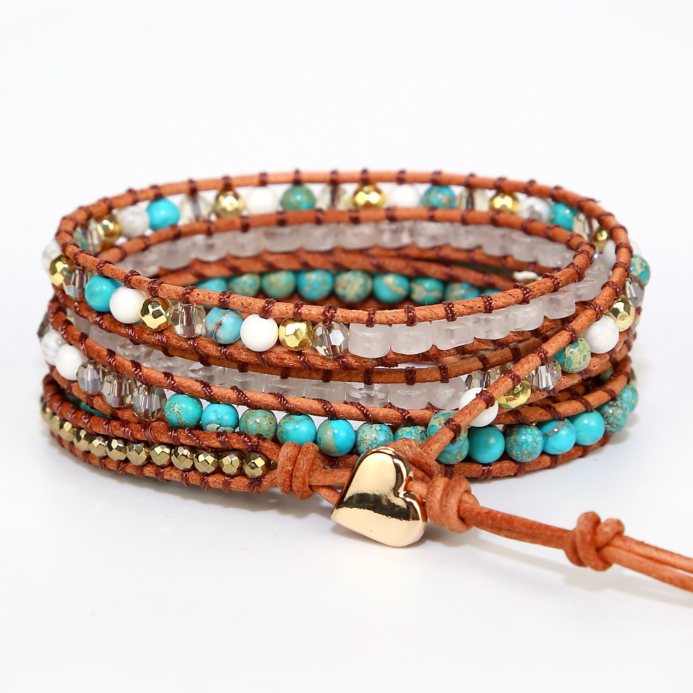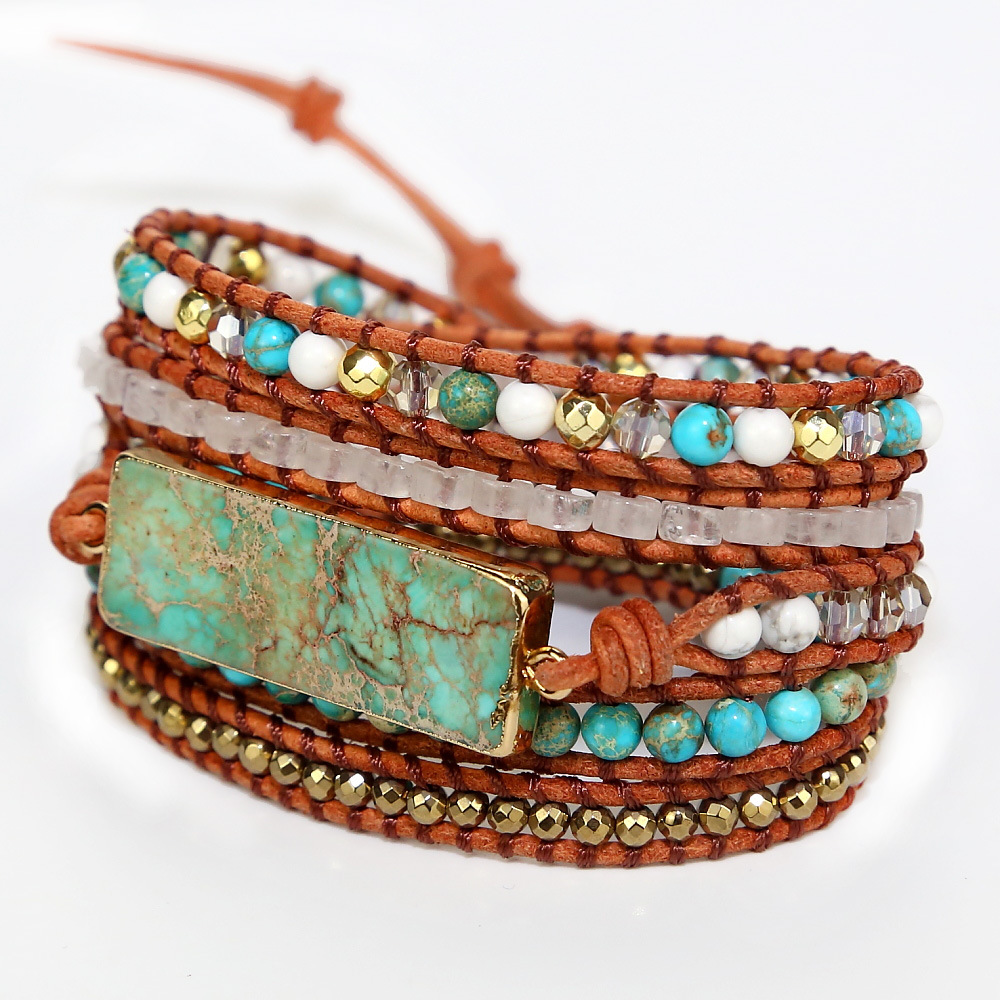 Rectangular Stone Beads Beaded Bracelet, Retro Style Bohemian Boho Handmade Woven Multi-layer Bracelet for Women