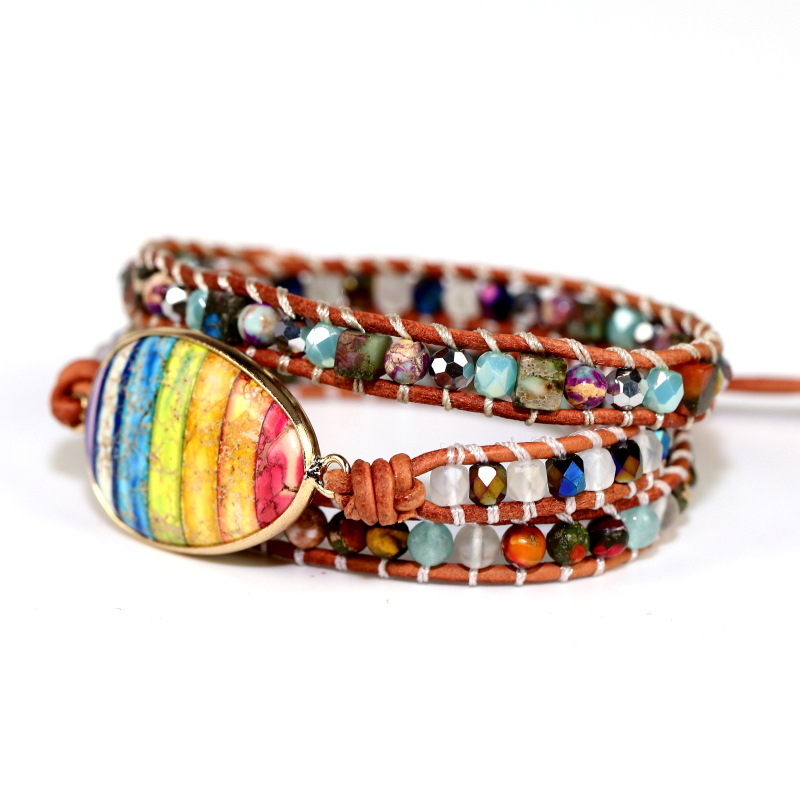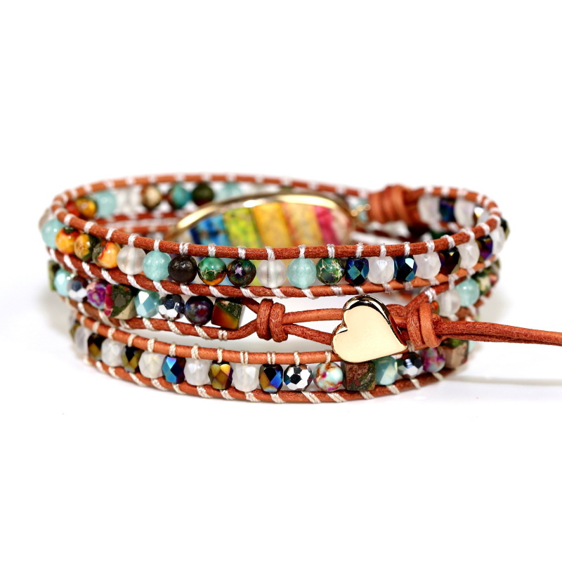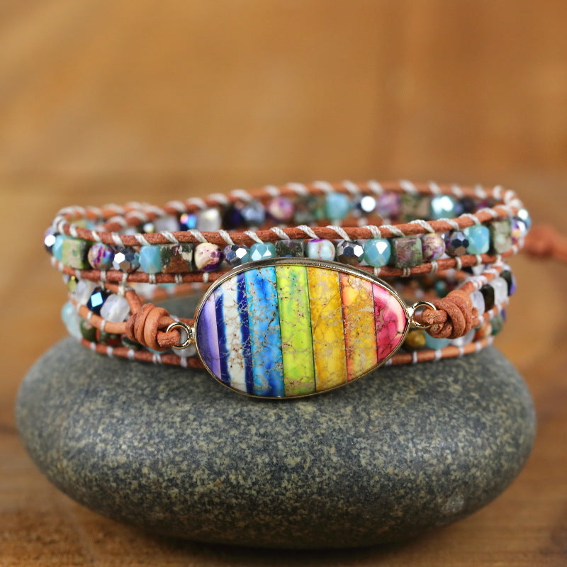 Retro Colorful Natural Stone Crystal Beads Beaded Bracelet for Women, Multi Layer Bohemian Boho Adjustable Bracelet
