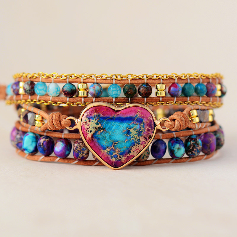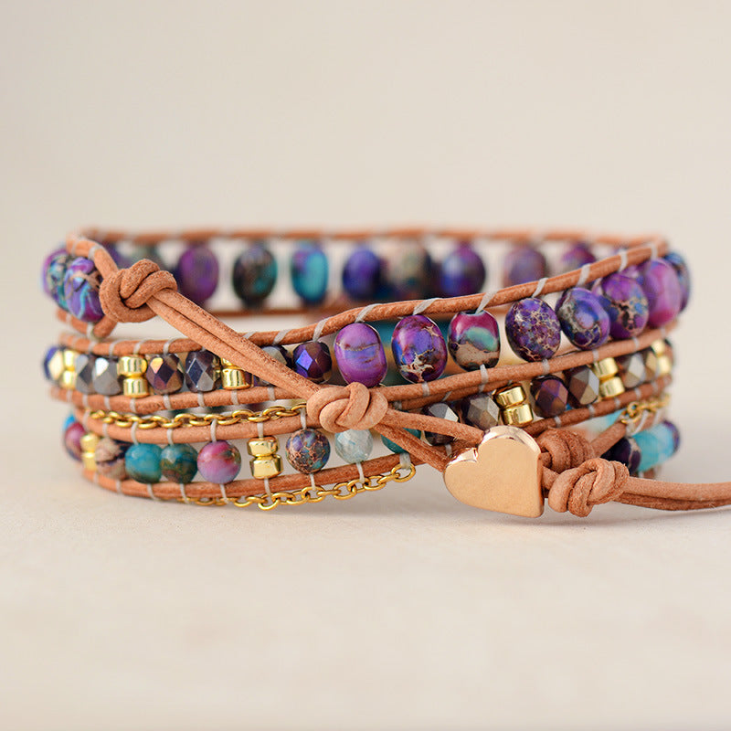 Retro Heart Natural Stone Beads Beaded Bracelet for Women, Leather Rope Multi Layer Wrapped Hand Woven Adjustable Bracelet