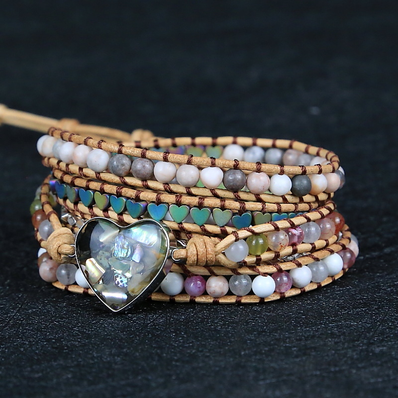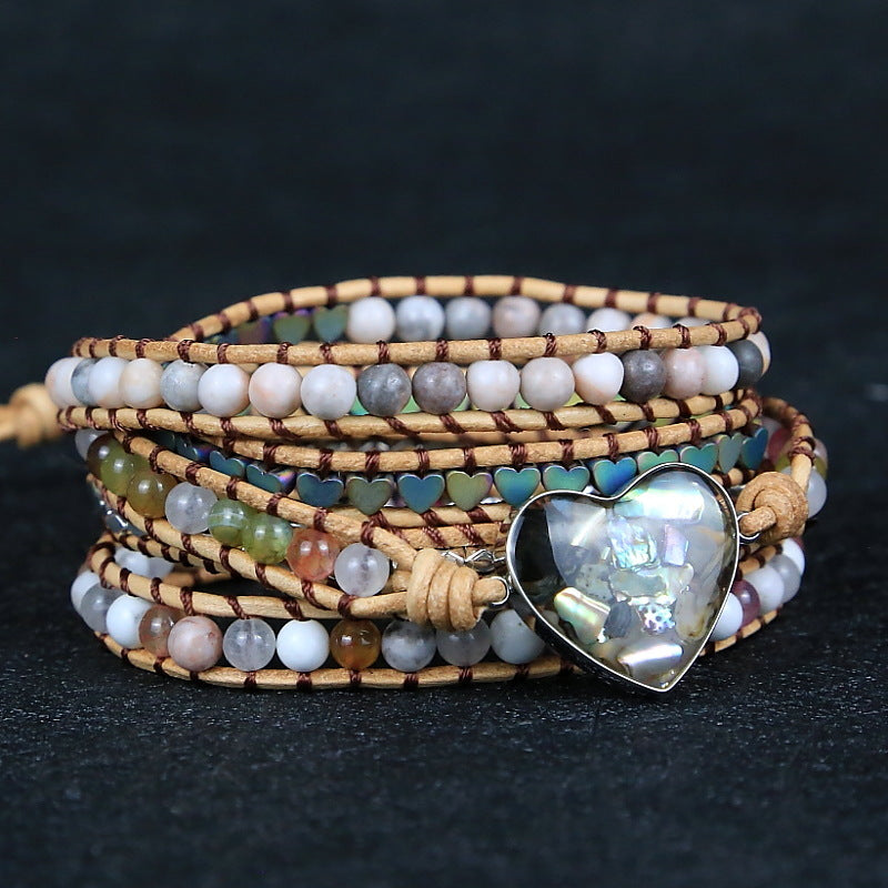 Shell Heart Woven Multi-layer Leather Rope Bracelet, Bohemian Boho Stone Beads Beaded Bracelet for Women