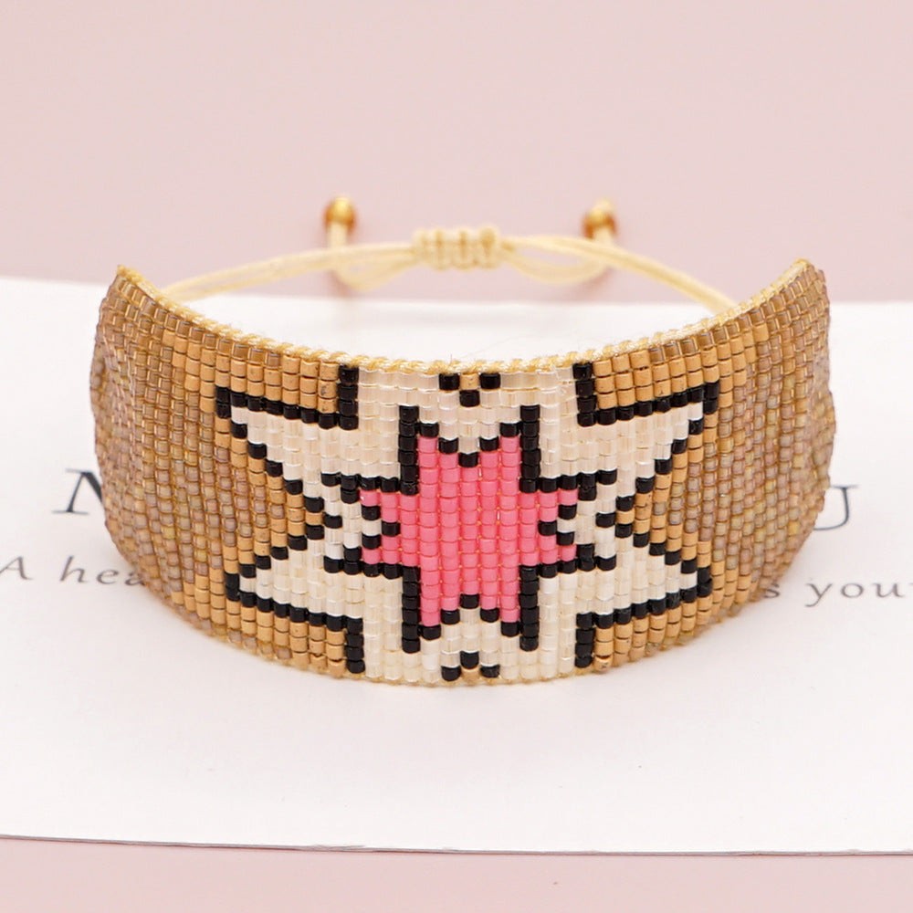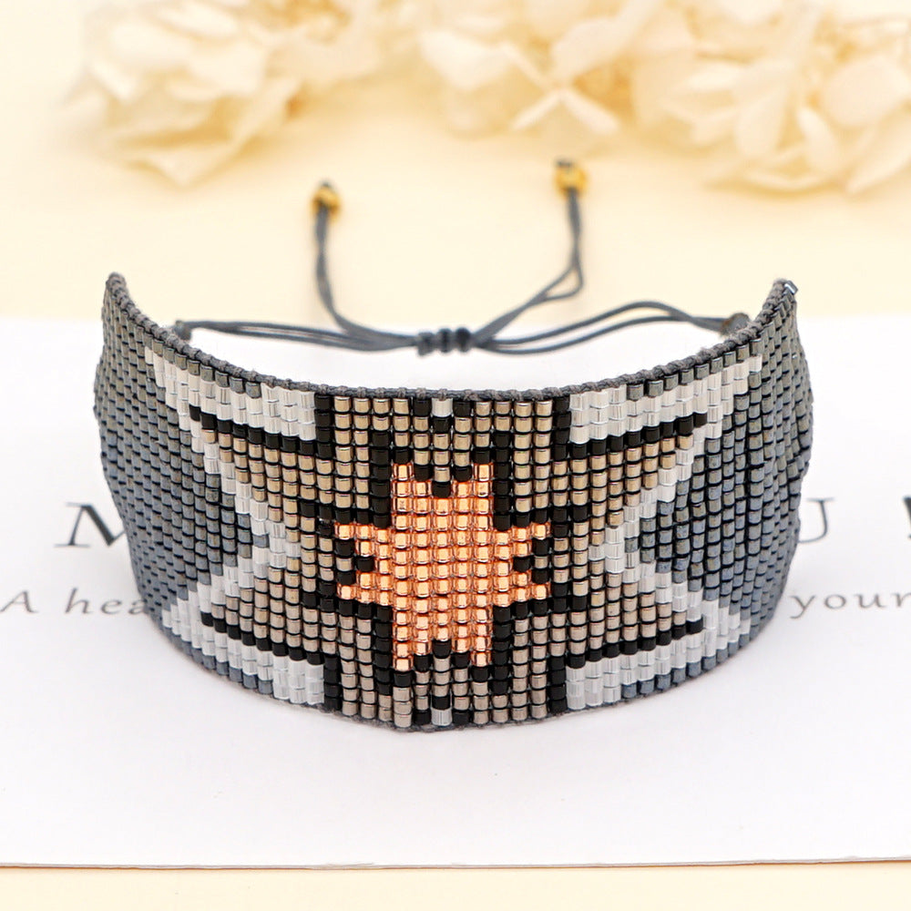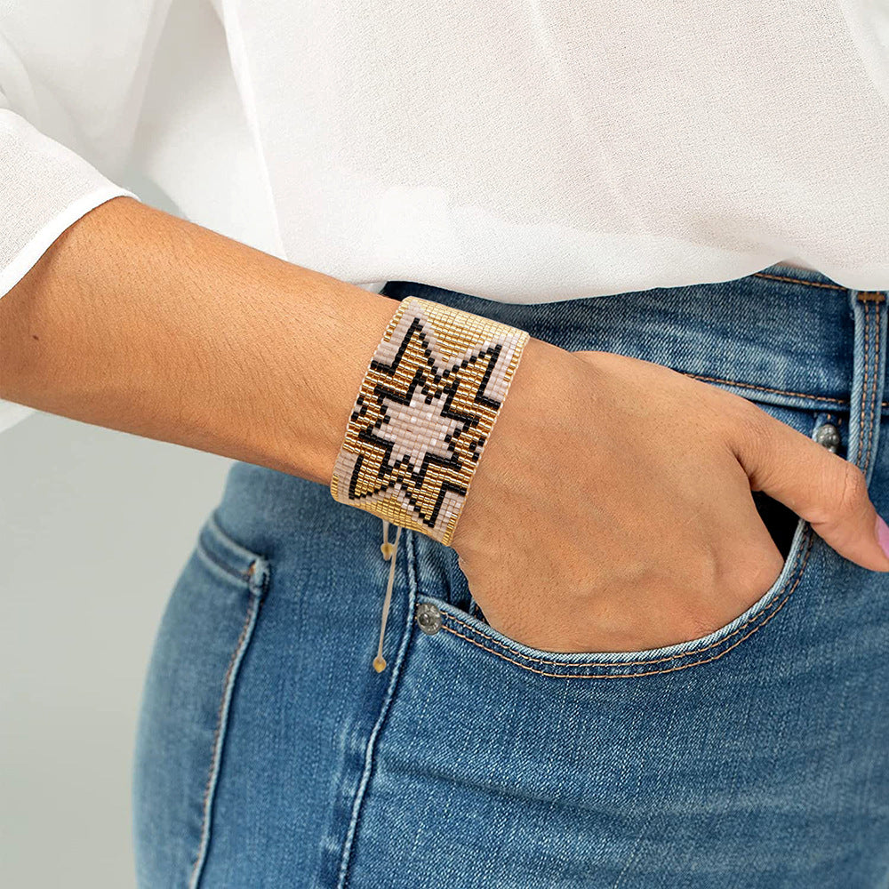 Star Bohemian Miyuki Beads Beaded Bracelets, Handmade Wide Adjustable Beaded Bracelet for Women