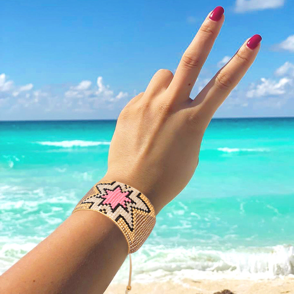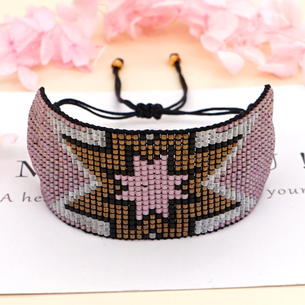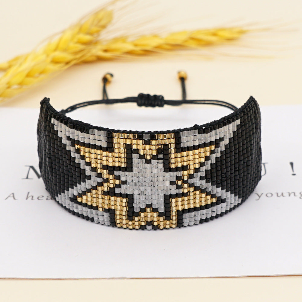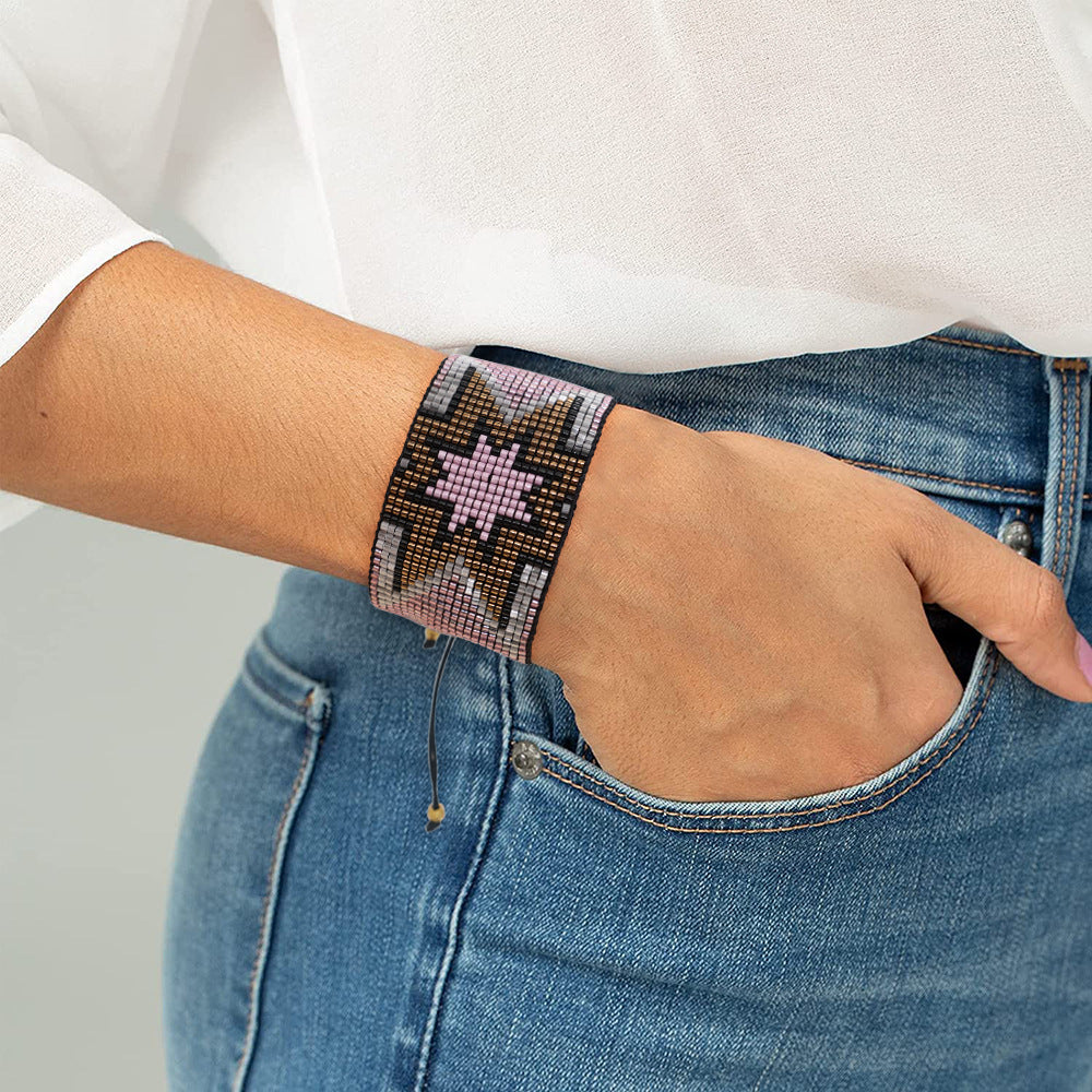 Star Bohemian Miyuki Beads Beaded Bracelets, Handmade Wide Adjustable Beaded Bracelet for Women