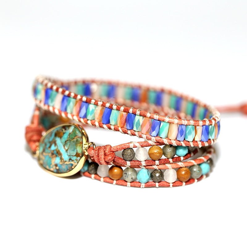 Natural Stone and Crystal Beads Hand Woven Multi-layer Beaded Bracelet, Bohemian Boho Vintage Style Bracelet for Women