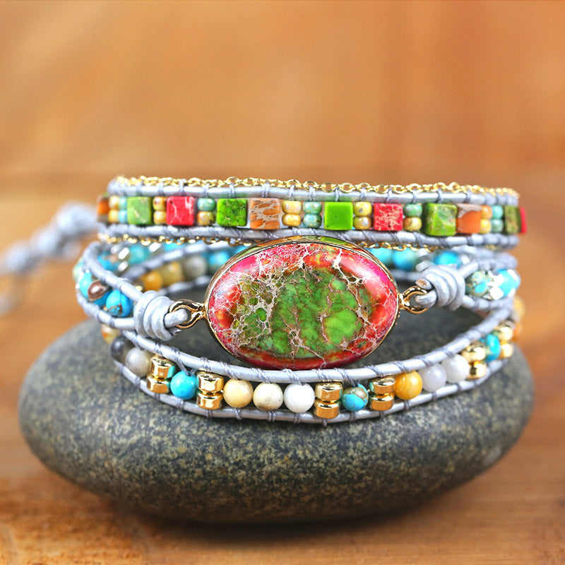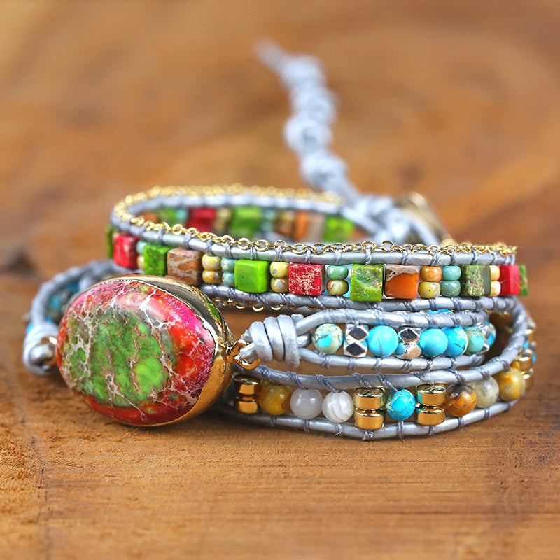 Stone Beads Hand Woven Beaded Bracelet for Women, Bohemian Boho Vintage Style Multilayer Adjustable Bracelets