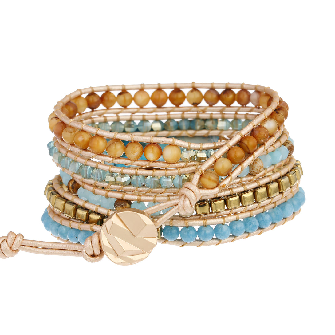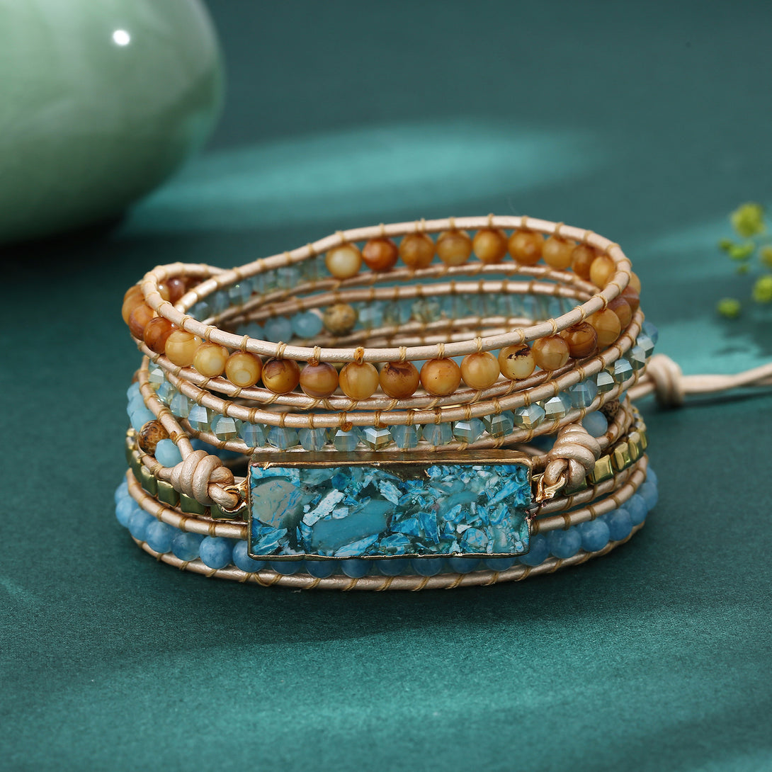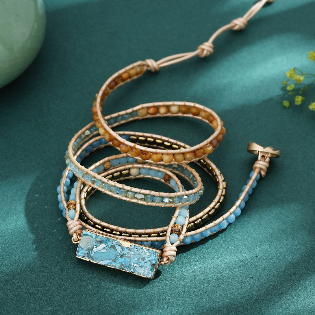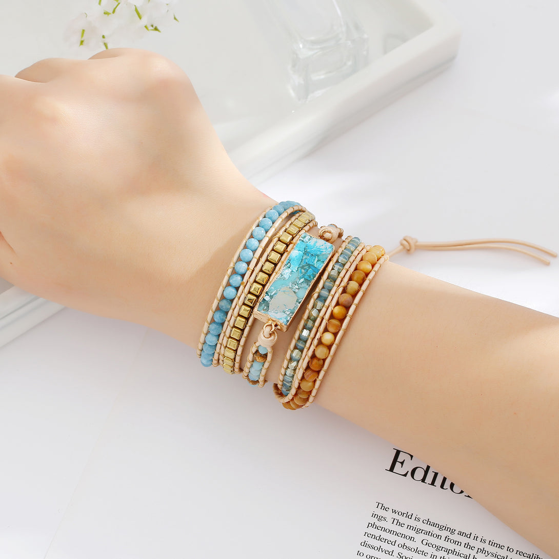 Vintage Adjustable Natural Stone Beads Beaded Bracelet for Women, Multi Layer Handmade Weaving Bohemian Boho Style Bracelets