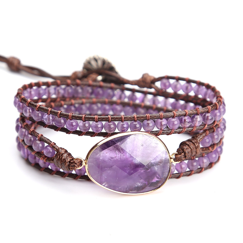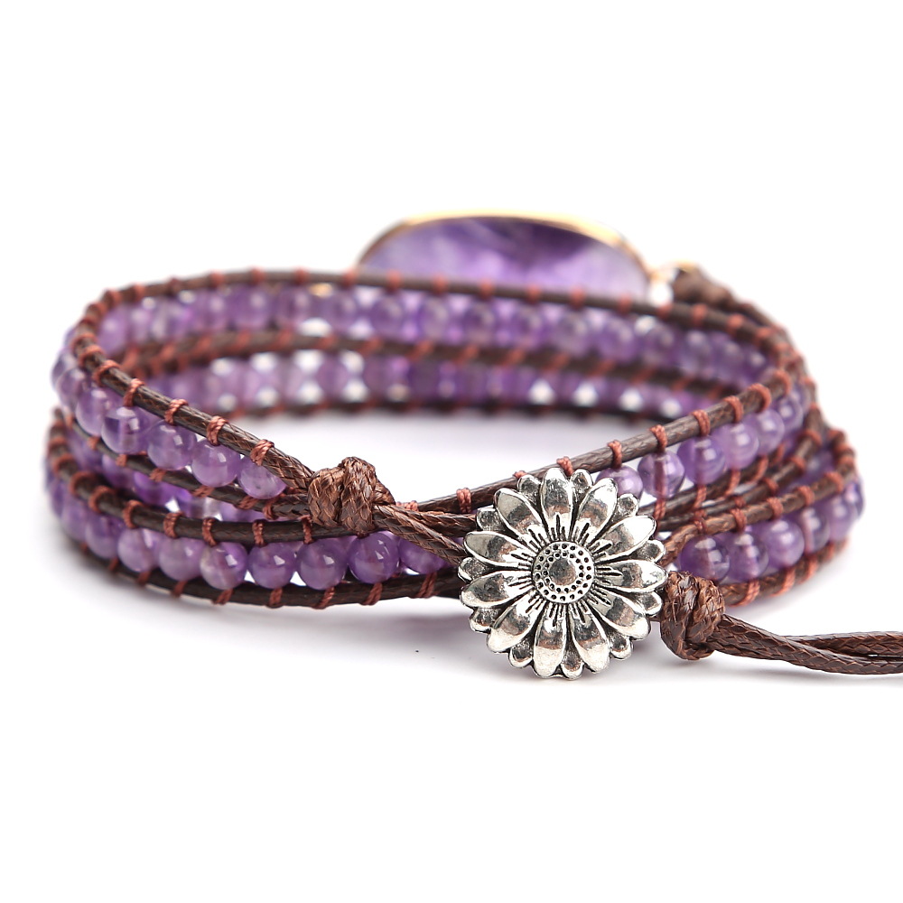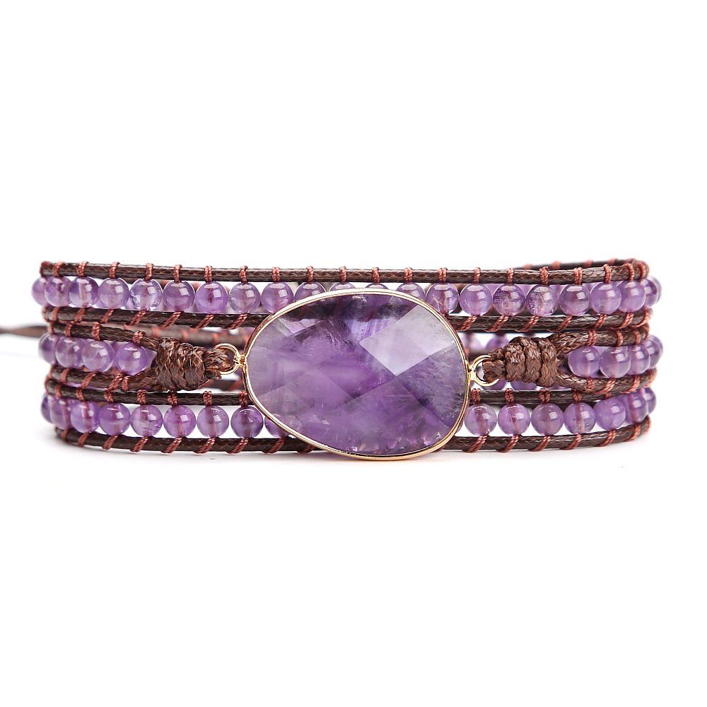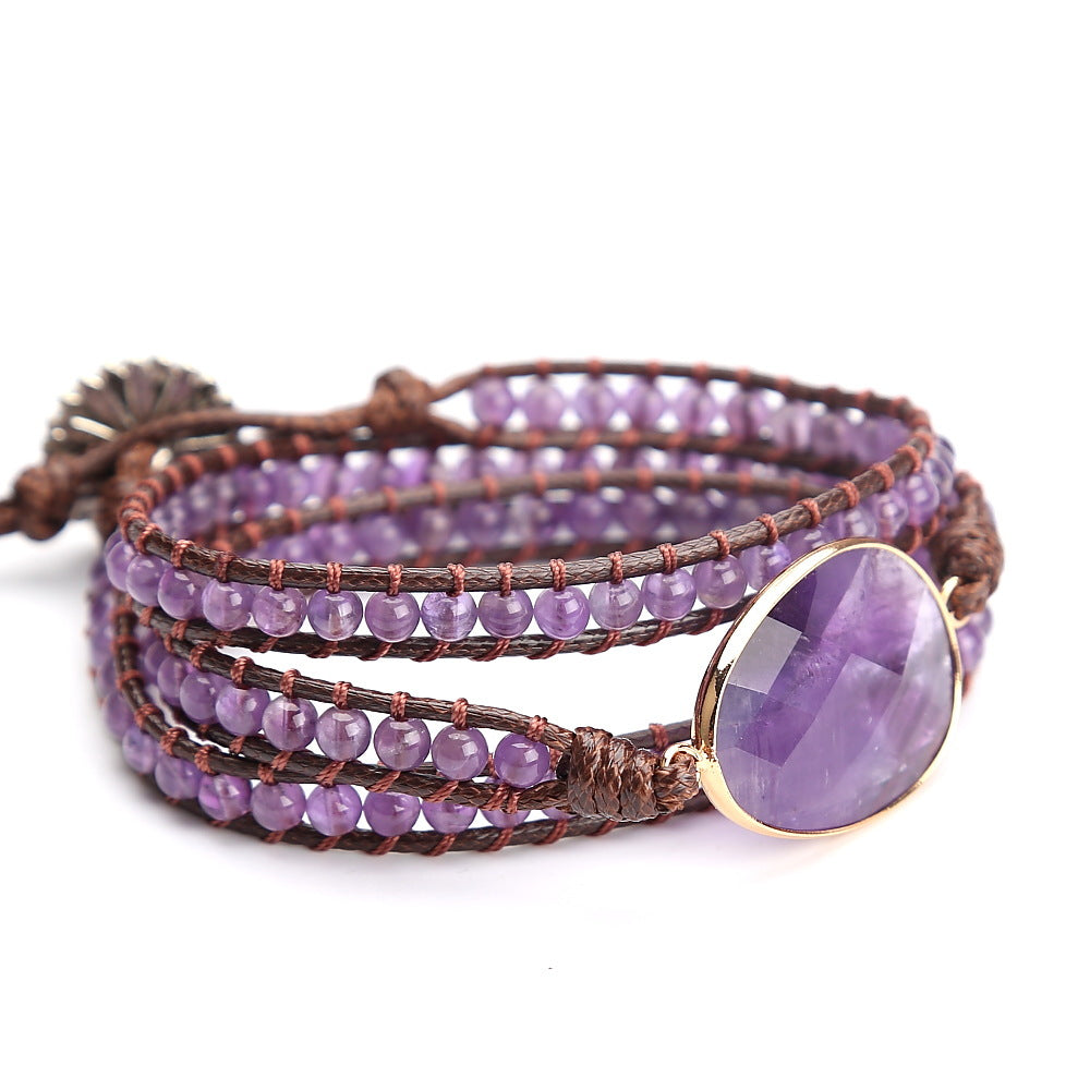 Vintage Amethyst Crystal Beads Hand Woven Multi-layer Beaded Bracelet for Women