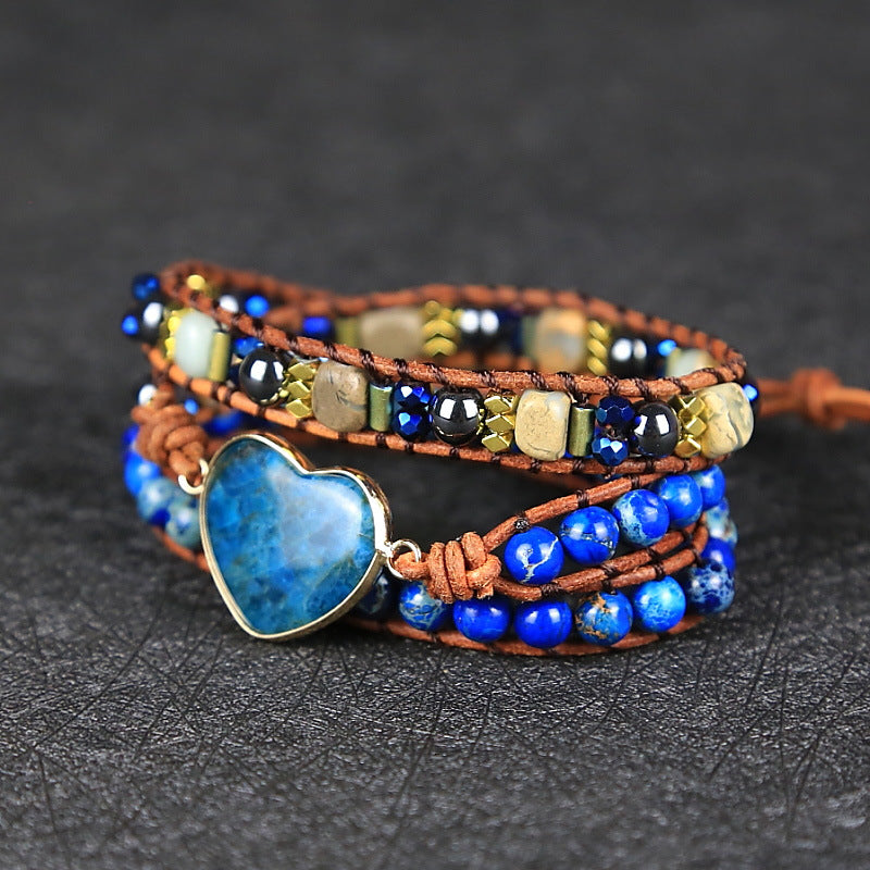 Vintage Bohemian Boho Hand Woven Multi-layer Adjustable Bracelet for Women, Heart Stone Crystal Mixed Beads Beaded Bracelet