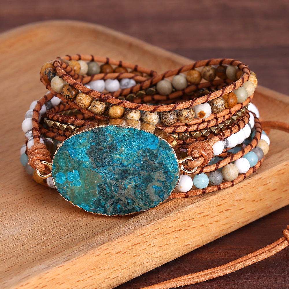 Vintage Bohemian Boho Natural Stone Beads Beaded Bracelet, Weaving Handmade Adjustable Bracelet for Women