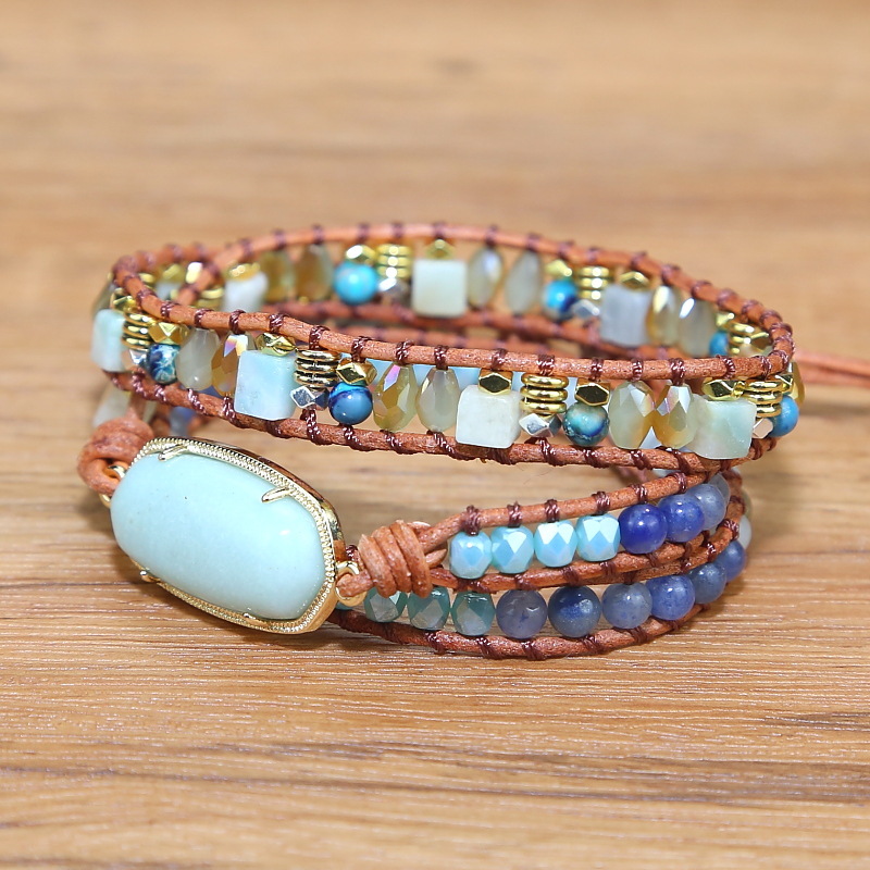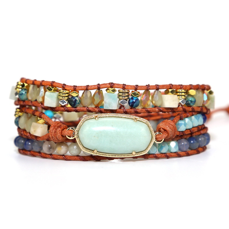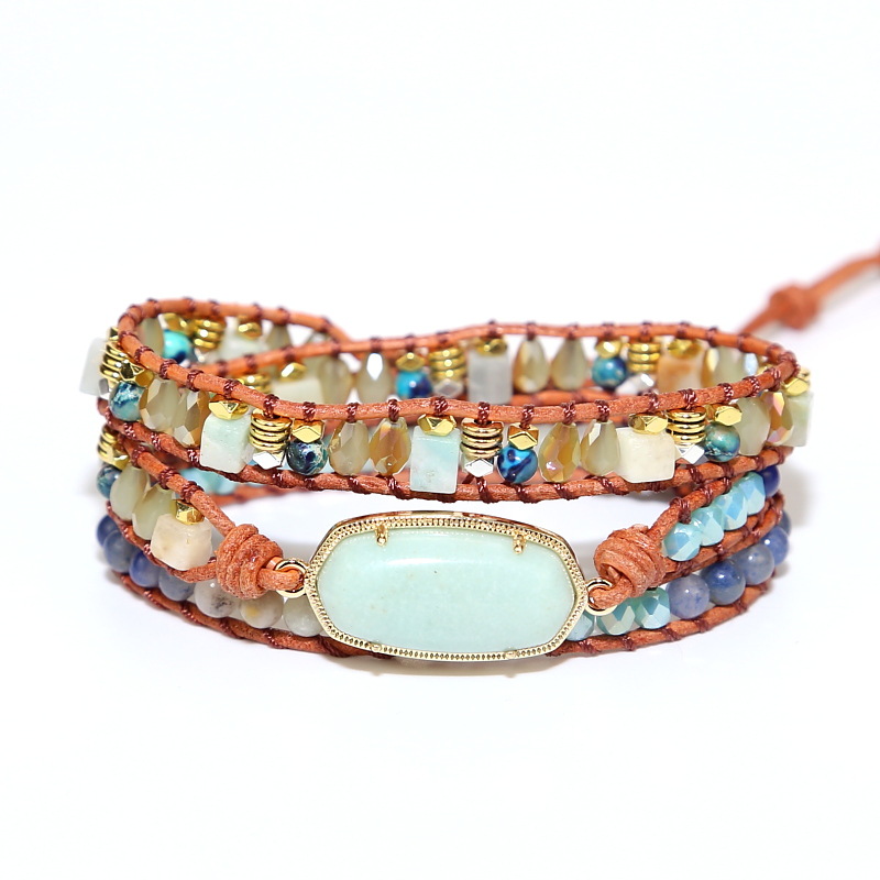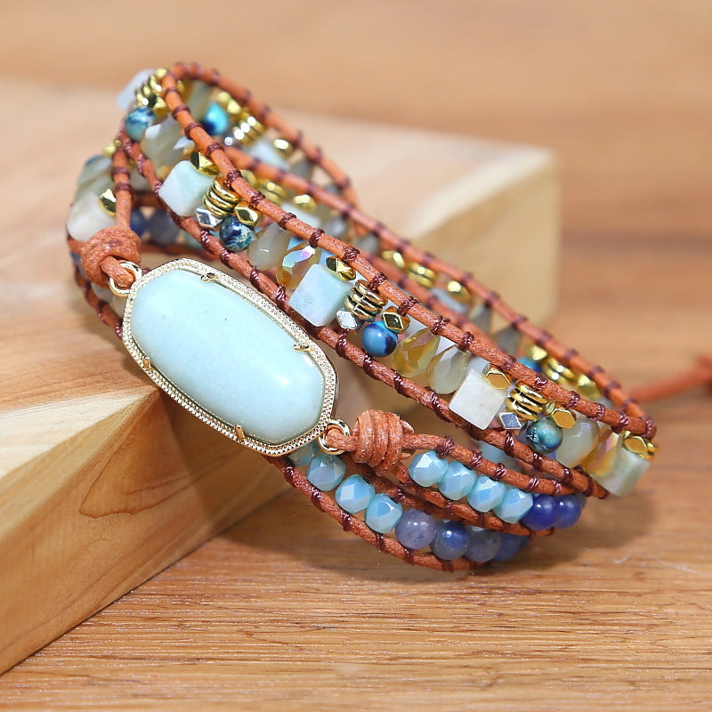 Vintage Bohemian Boho Style Multi-layered Natural Stone Crystal Mixed Beads Beaded Bracelet for Women