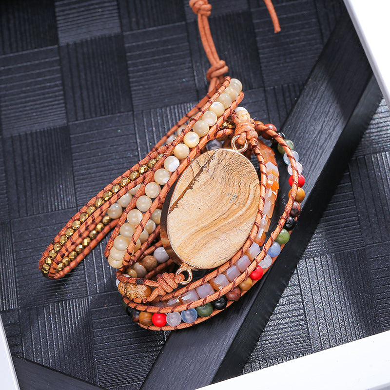 Vintage Natural Stone Beads Beaded Bracelet, Bohemian Boho Weaving Handmade Adjustable Bracelet for Women