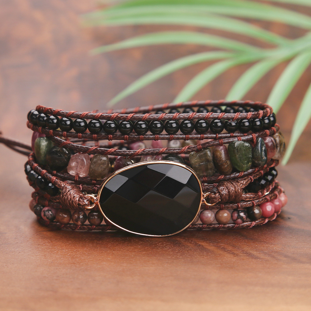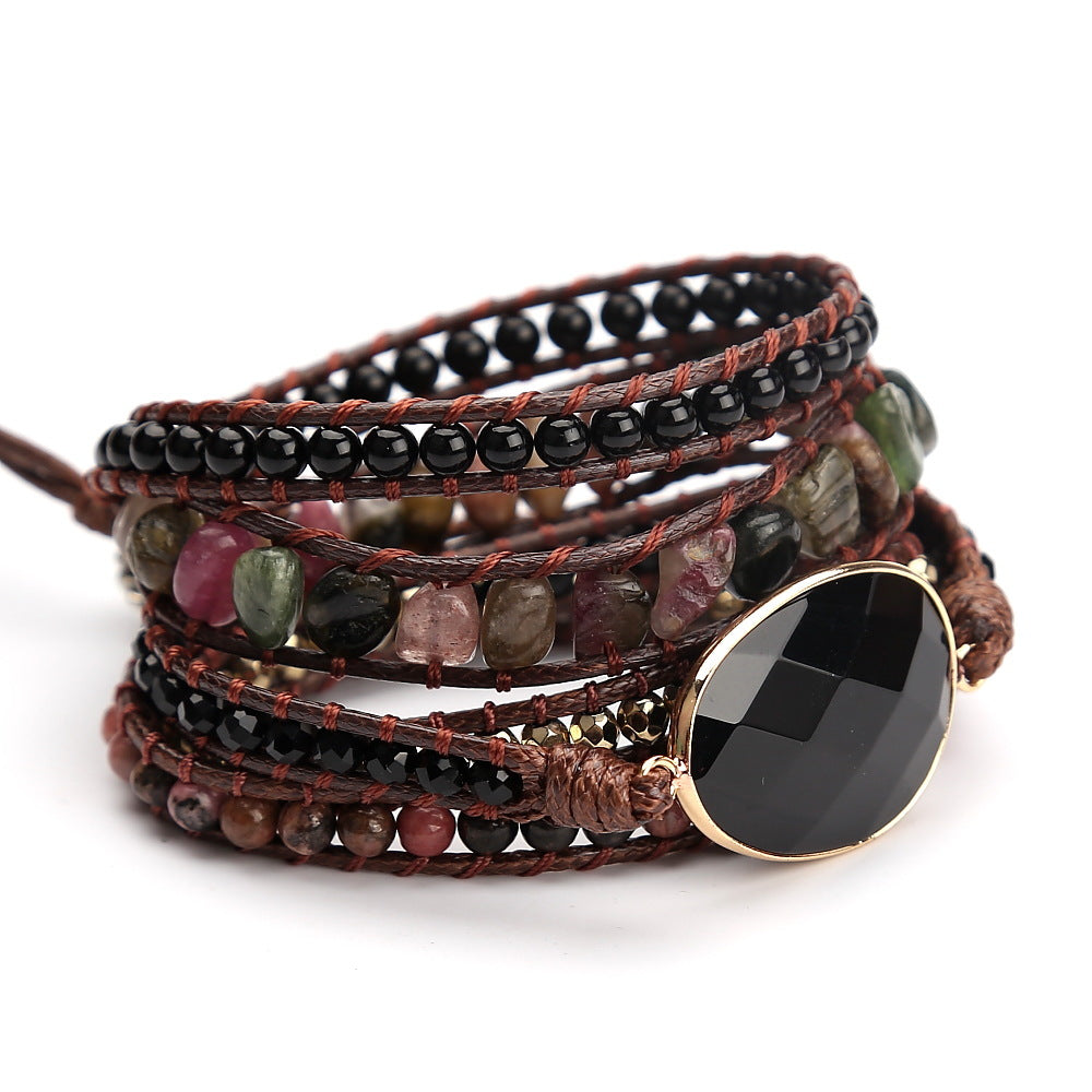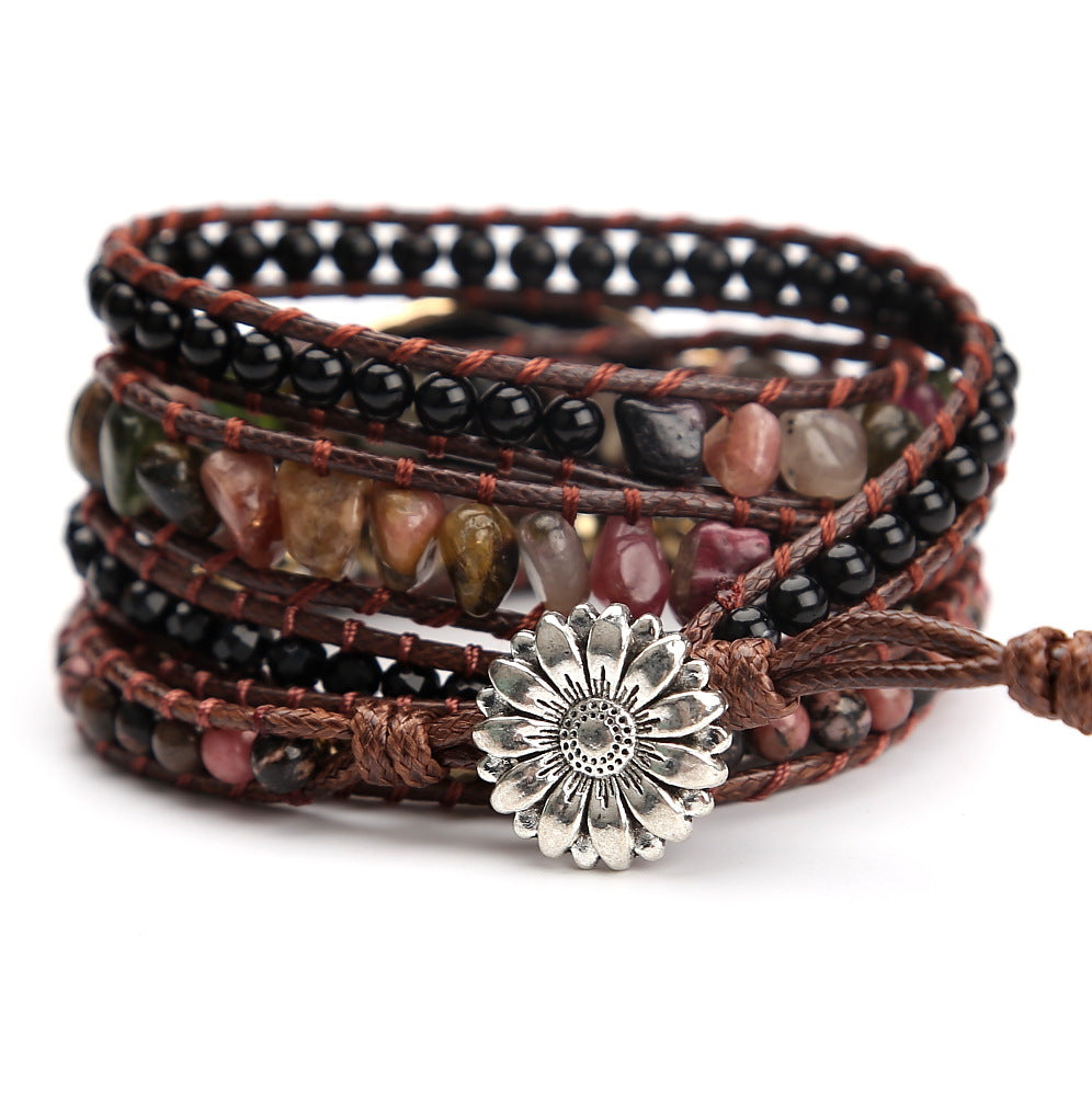 Vintage Natural Stone Beads Beaded Bracelet for Women, Hand Woven Multi-layer Bohemian Boho Adjustable Bracelet