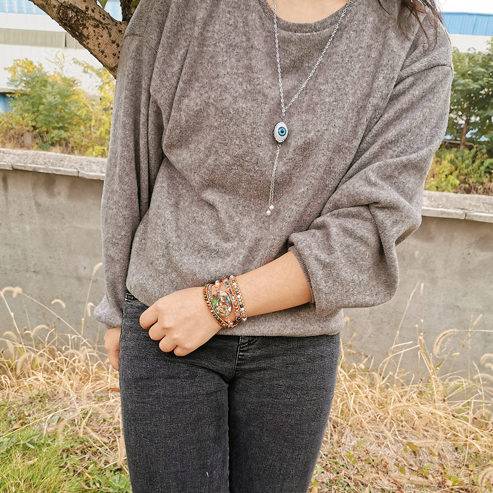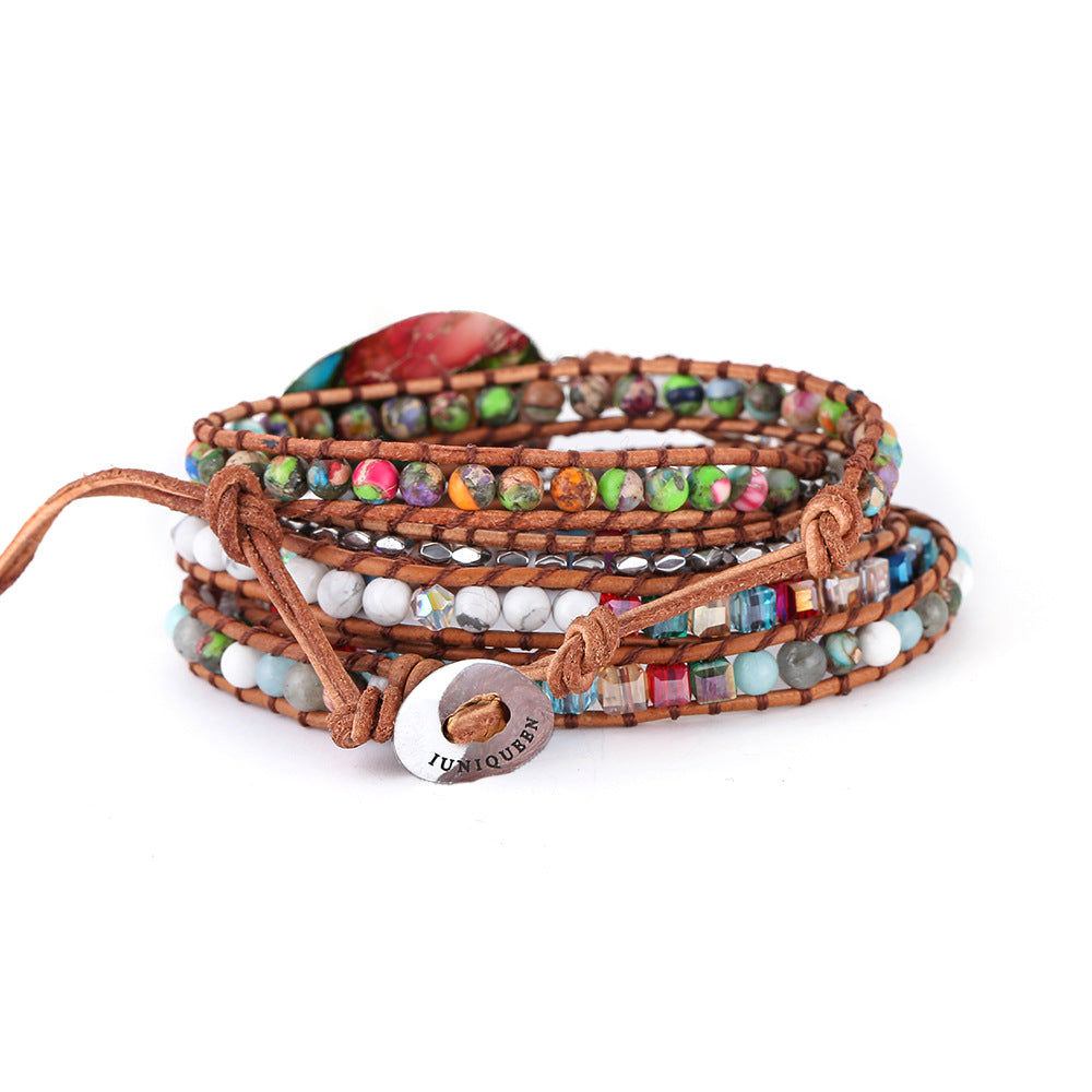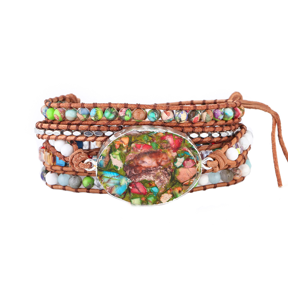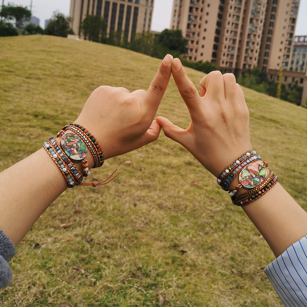 Vintage Natural Stone Beads Beaded Bracelet, Weaving Handmade Bohemian Boho Adjustable Bracelet for Women