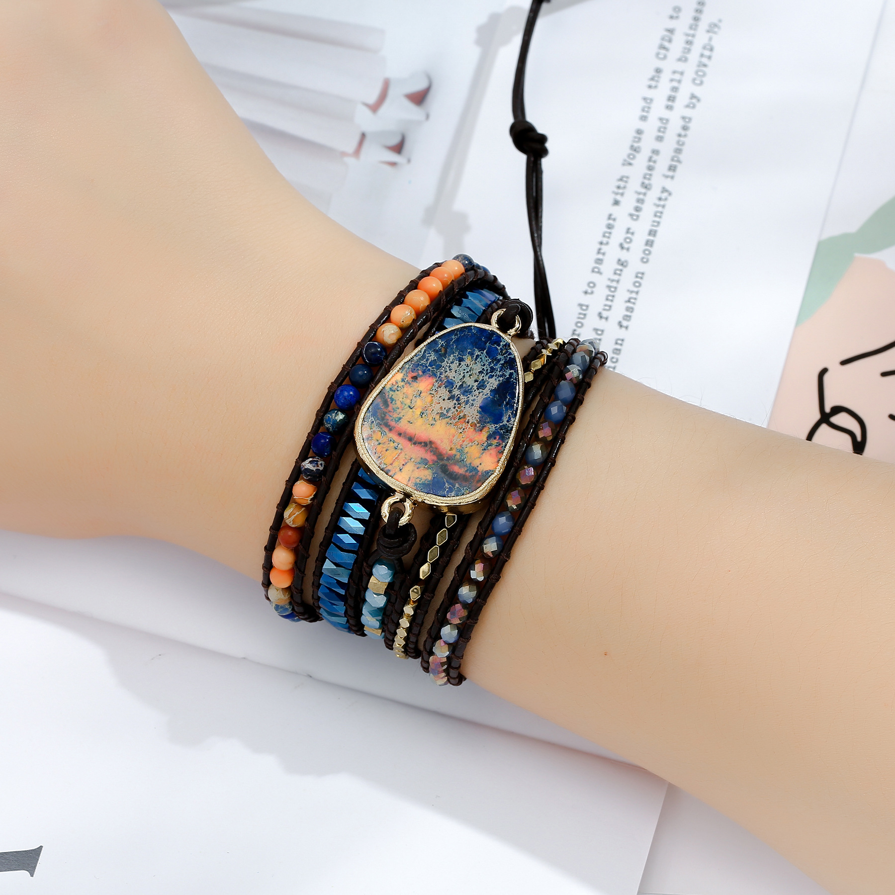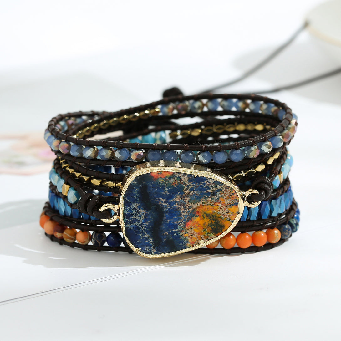 Vintage Natural Stone Crystal Mixed Beads Multi-layer Beaded Bracelet, Weaving Handmade Bohemian Bracelet for Women