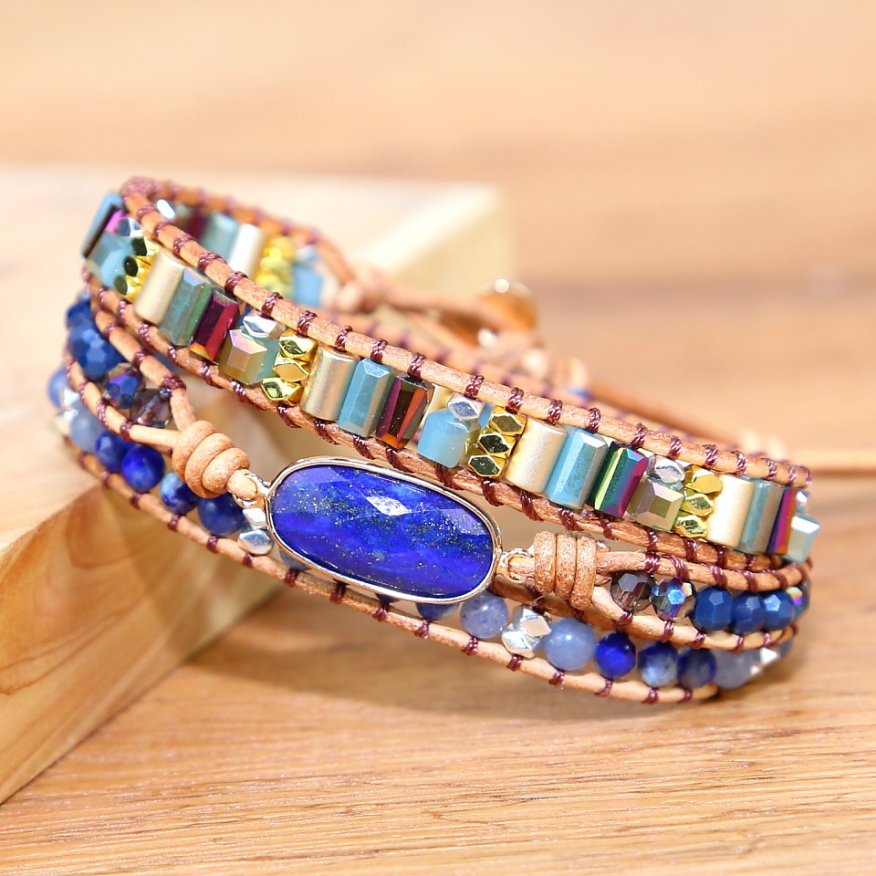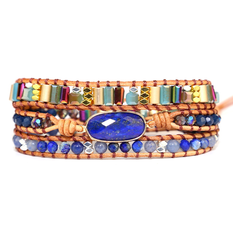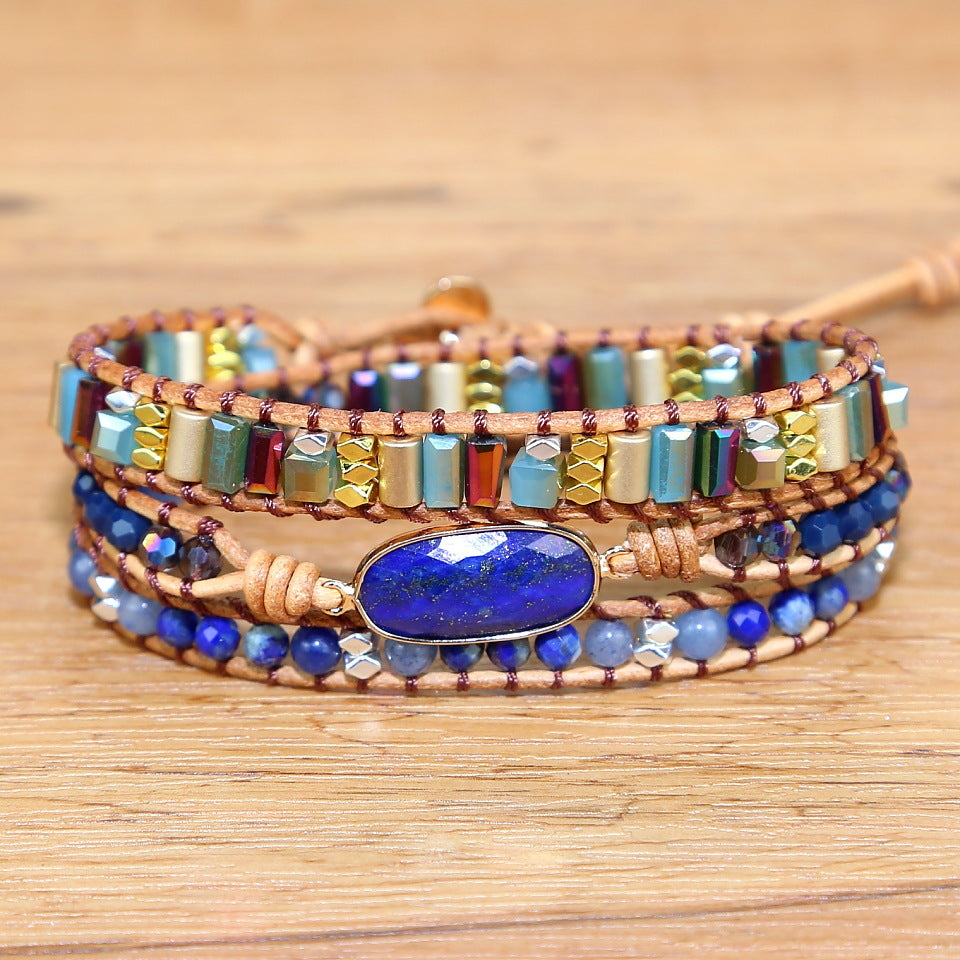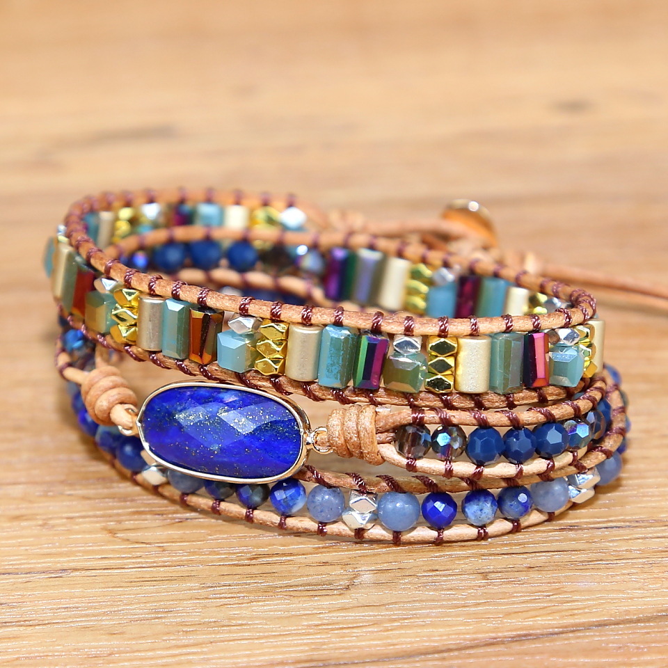 Vintage Stone Crystal Mixed Beads Beaded Bracelets for Women, Bohemian Boho Multilayer Adjustable Bracelets with Leather Rope
