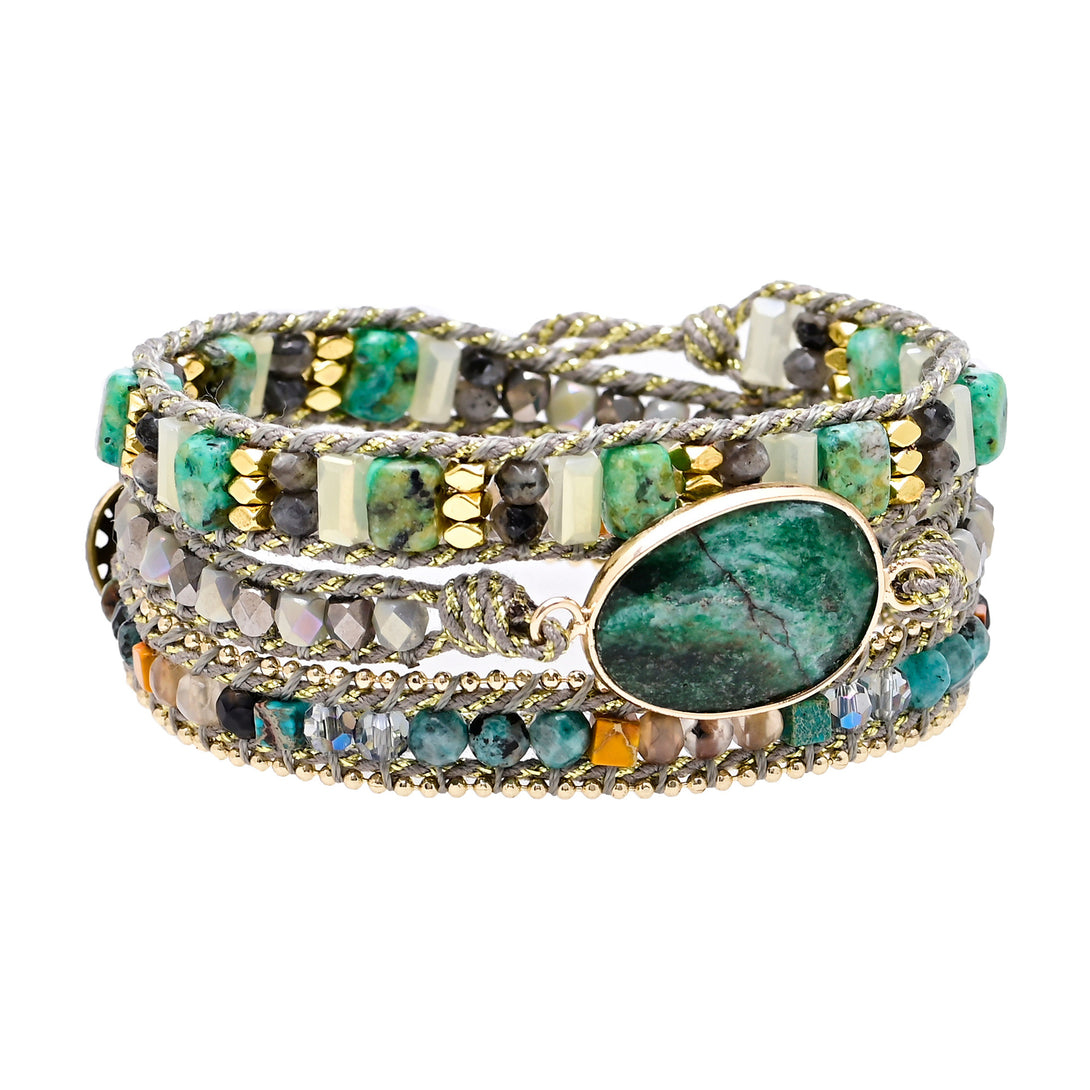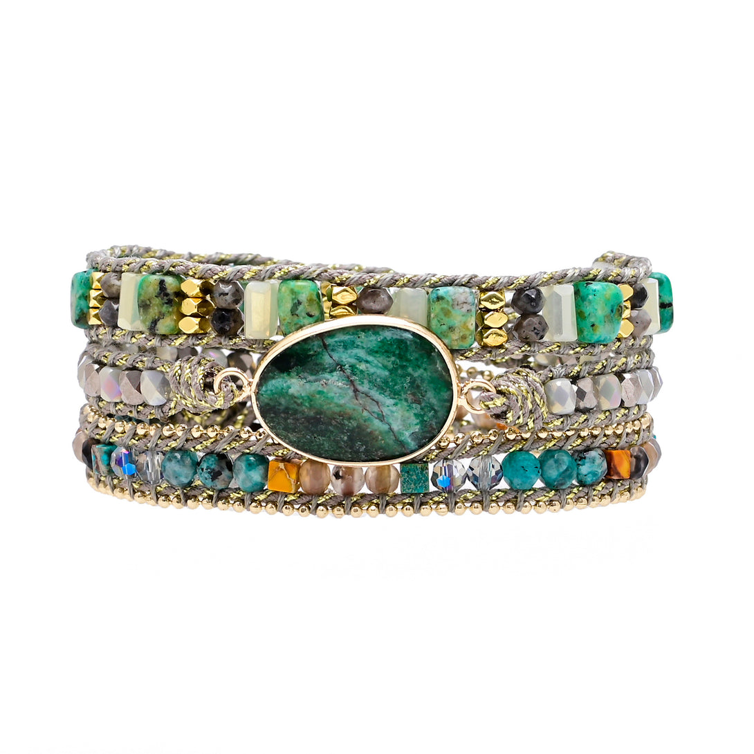 Vintage Style Natural Stone Beads Beaded Bracelet for Women, Bohemian Boho Handmade Multilayer Woven Adjustable Bracelet
