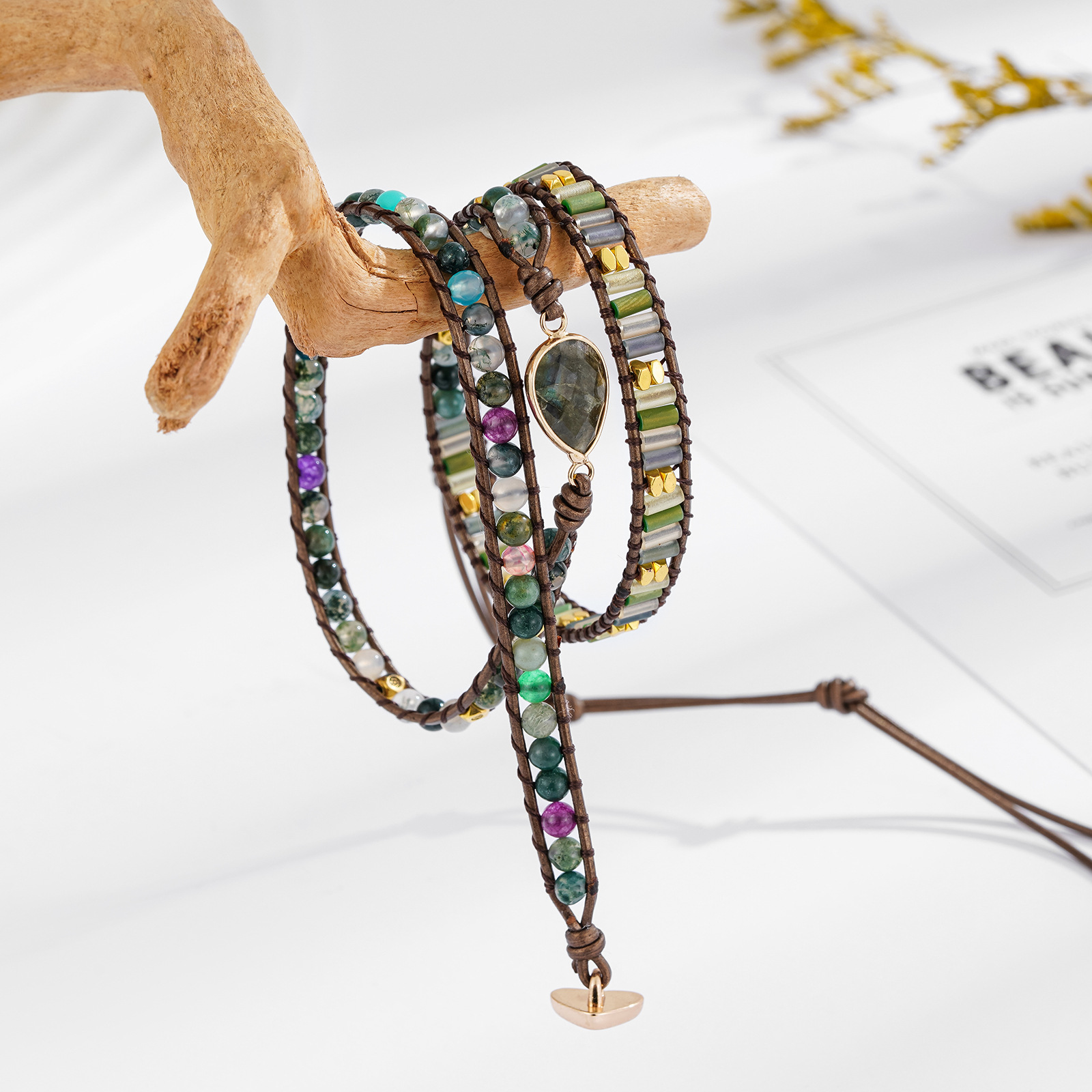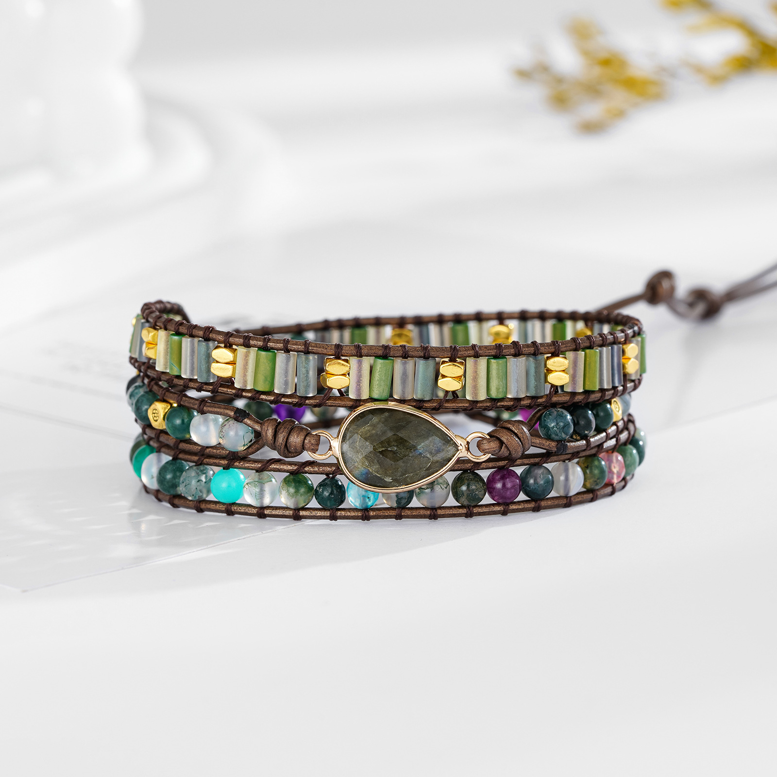Vintage Water Droplet Shaped Natural Stone Beads Crystal Beads Mixed Hand Woven Beaded Adjustable Bracelet for Women