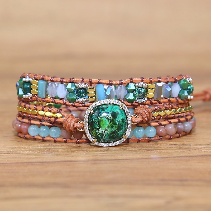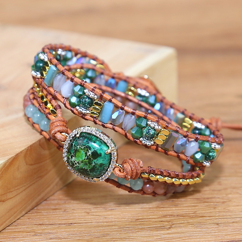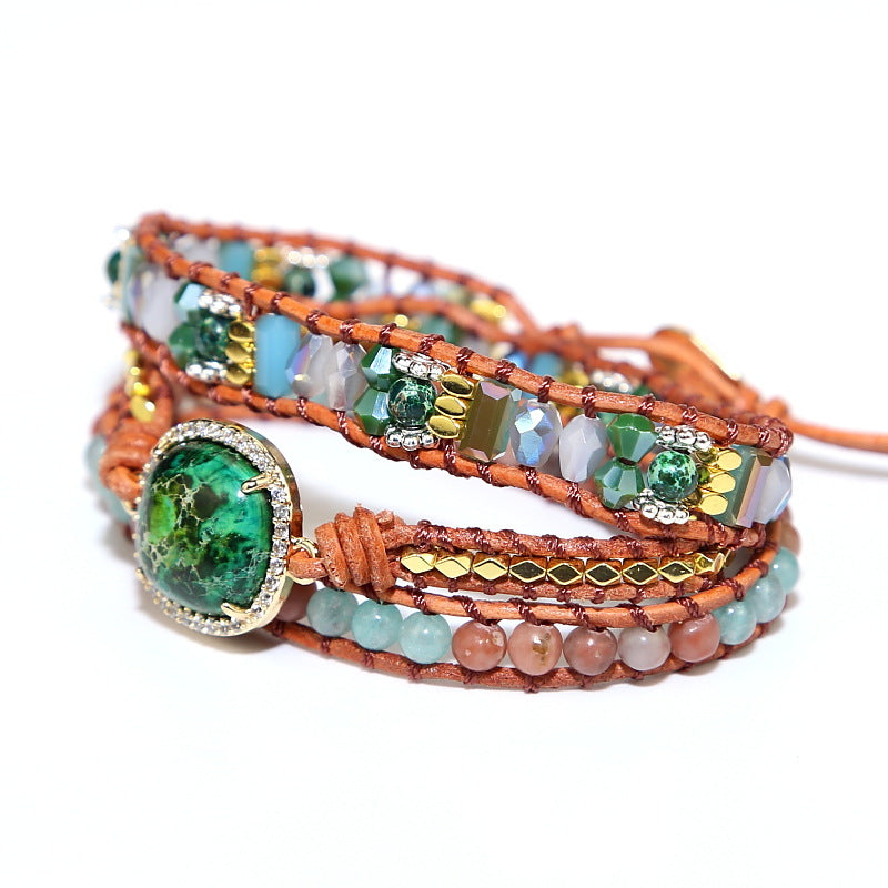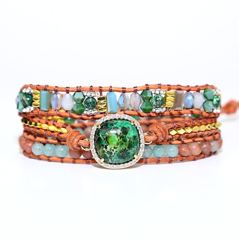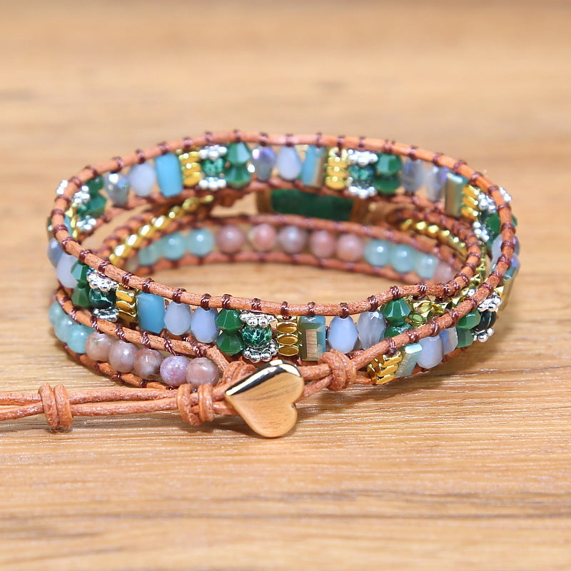Vintage Woven Multi-layered Stone Crystal Mixed Beads Bohemian Boho Beaded Bracelet for Women