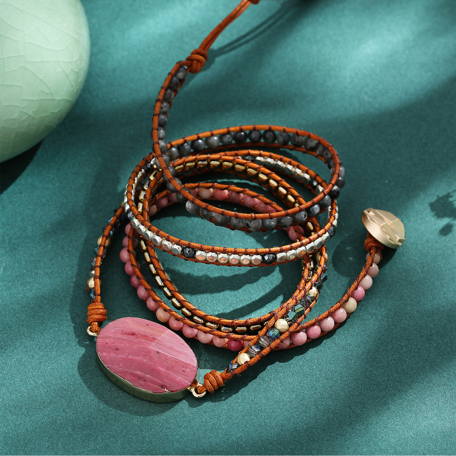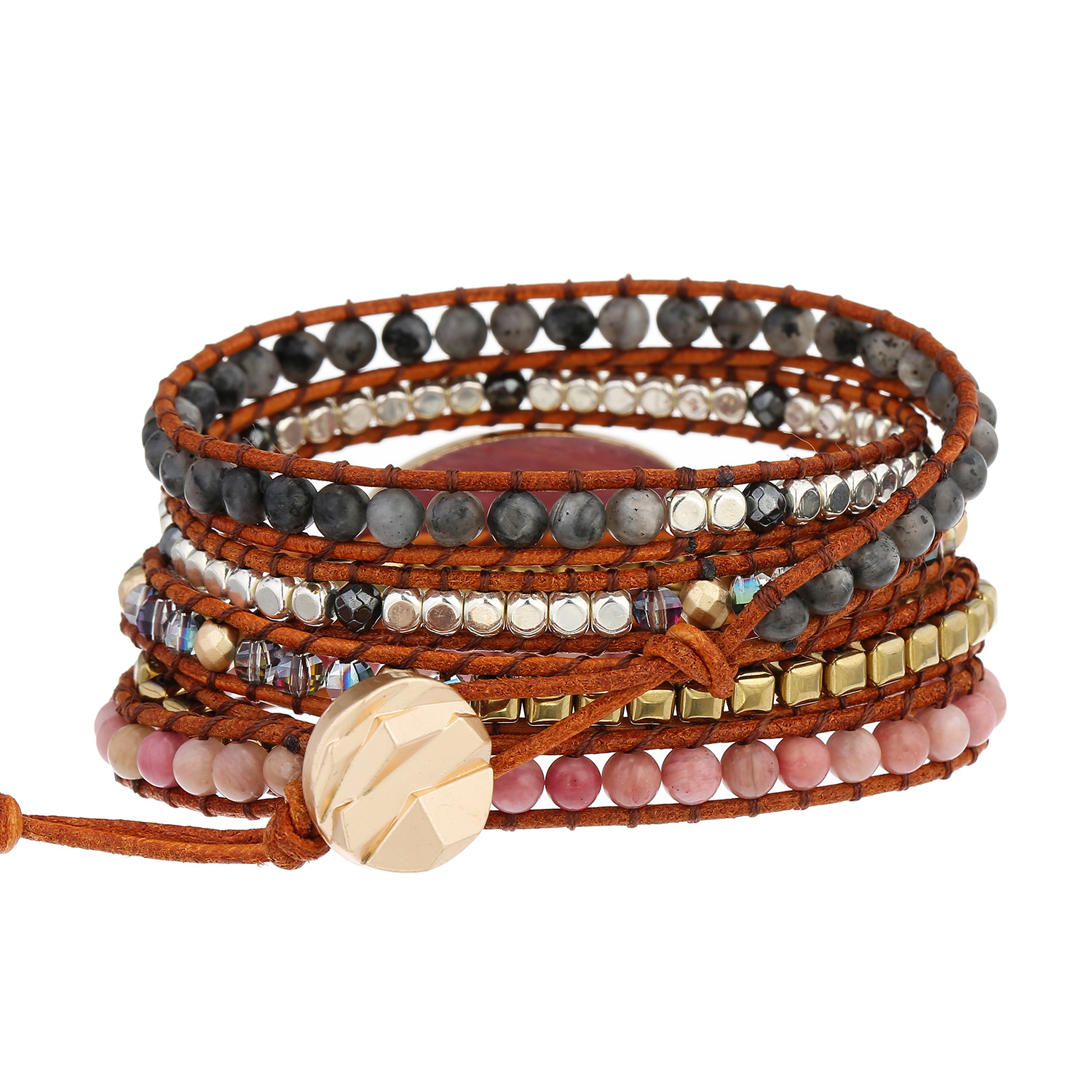 Vintage Wrapped Stone Metal Mixed Beads Beaded Bracelet for Women, Multilayer Handmade Weaving Bohemian Boho Bracelets