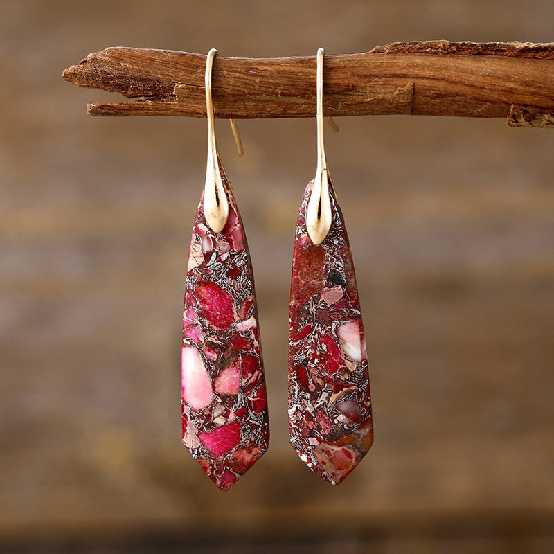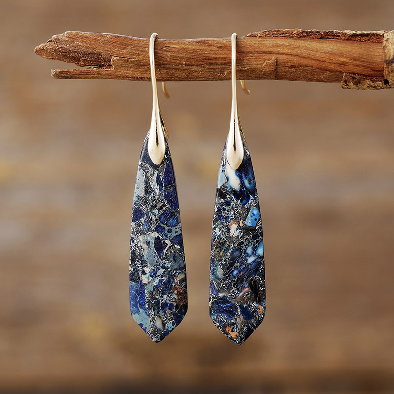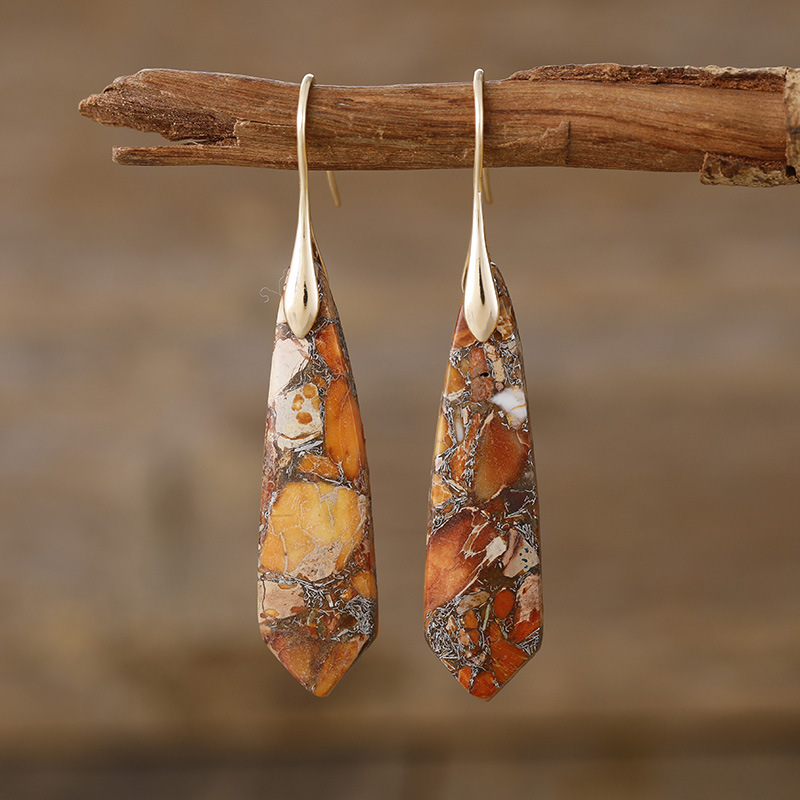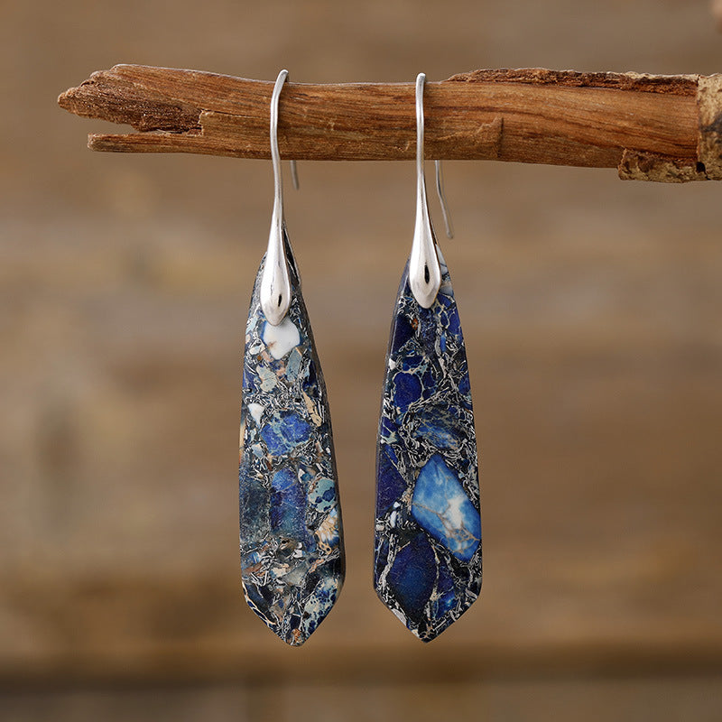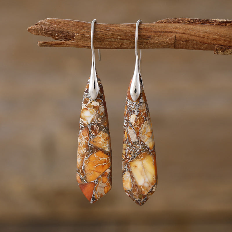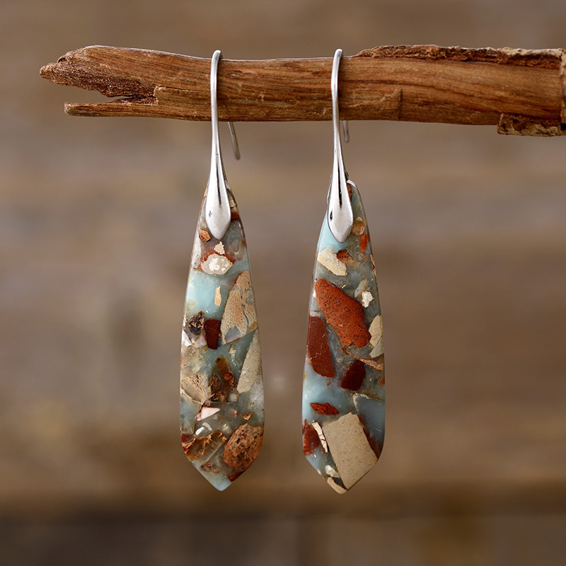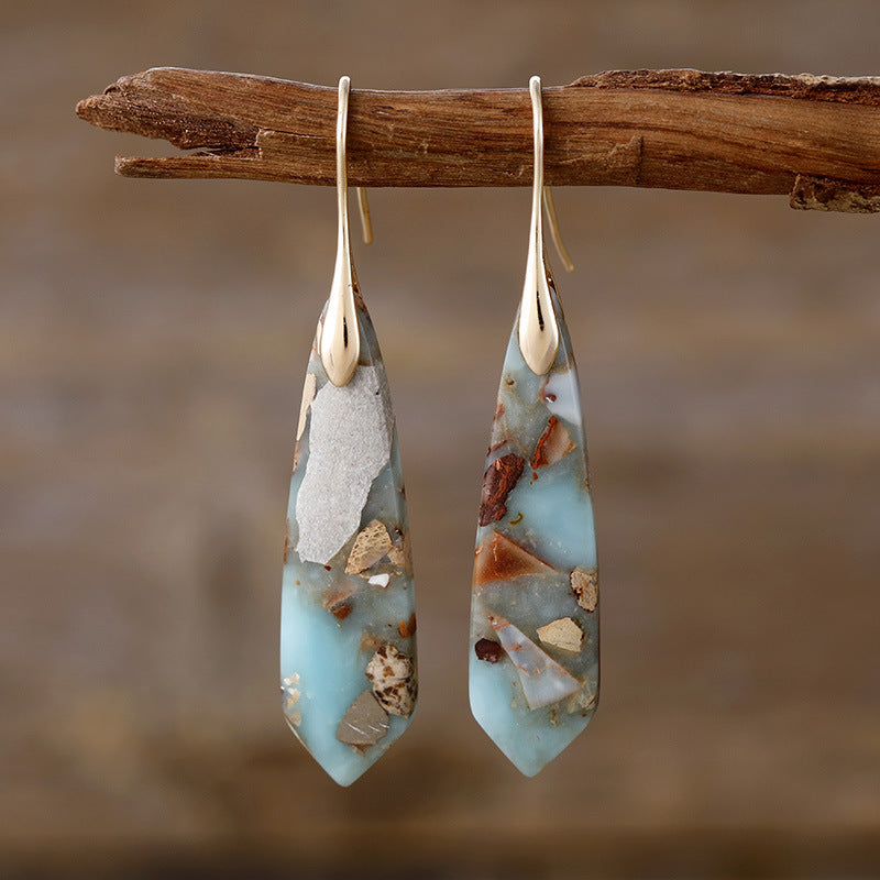 Water Drop Bohemian Boho Natural Stone Handmade Dangle Earrings for Women